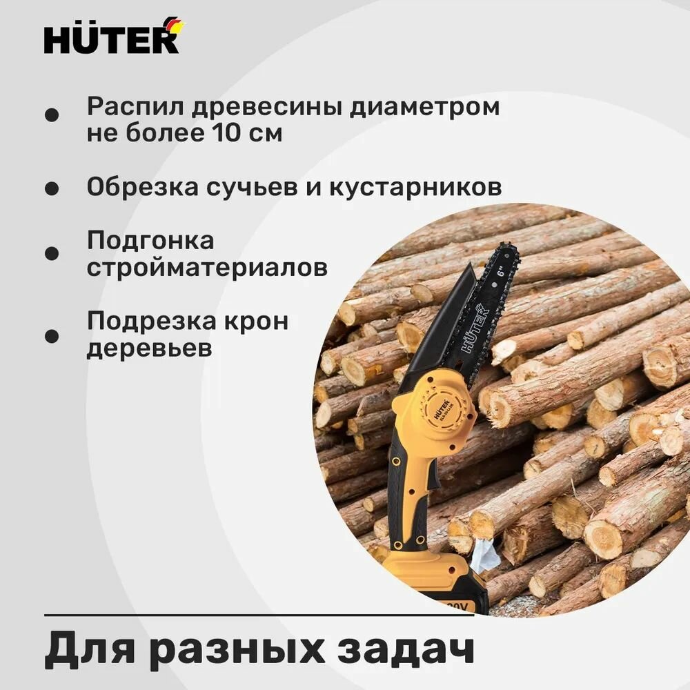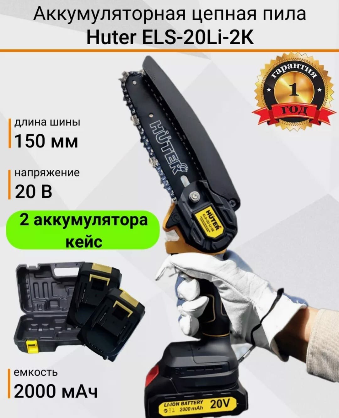 Электропила Huter ELS20Li2K - аккумуляторная мини-пила для распила дерева 2 акб в комплекте