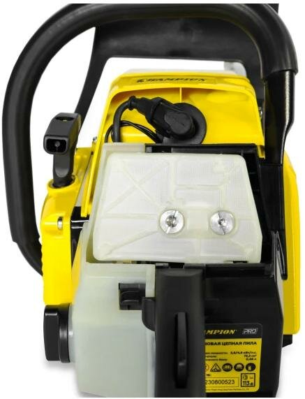 | Отзыв: | Купили пилу для редких поездок в лес и небольшой распиловки деревьев на дому. Смотрели брендовые пилы, но сегодняшние реалии их стоимости оттолкнули от покупки. Перечитав все что нашел в сети по пилам, пришел к выводу, что Champion по соотношению цена / качество выгодно выигрывает на фоне остального ширпотреба. В итоге купив пилу, остались очень довольны, пилит бревна очень уверено, запаса мощности мотора хватает за глаза, течи масла на цепь, как пишут про другие пилы, здесь не замечено. Если планируете редко что то распилить, то на мой взгляд покупка дорогой пилы не совсем оправдана, а в категории более менее доступных пил Champion все таки хороший вариант. И еще в качестве дополнения, имею в пользовании снегоуборщик Champion ST-656, работает уже почти 5 лет и проблем нет вообще ни каких, заводиться так же с пол оборота в любую погоду. |