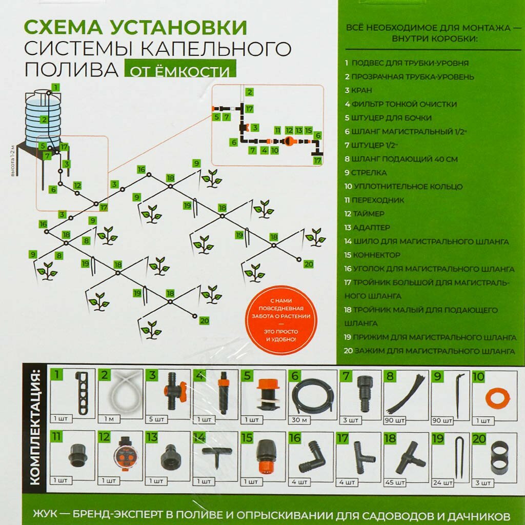 Жук Набор капельного полива от емкости автомат, длина шланга: 18 м,с таймером, кол-во растений:60шт.