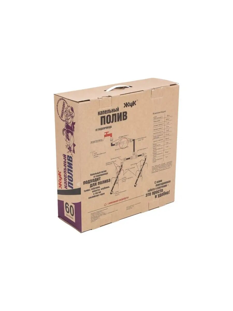 Комплект для капельного полива Жук, от водопровода, с таймером, 60 растений