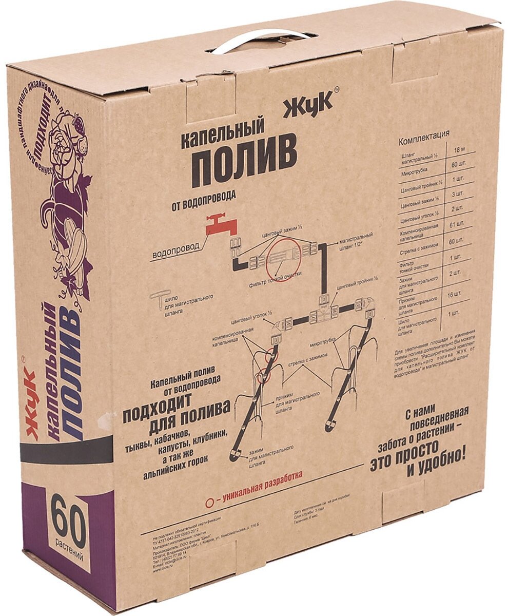 Капельный полив ЖУК Тепличный 8198-00 с таймером, водопровод, 60 растений