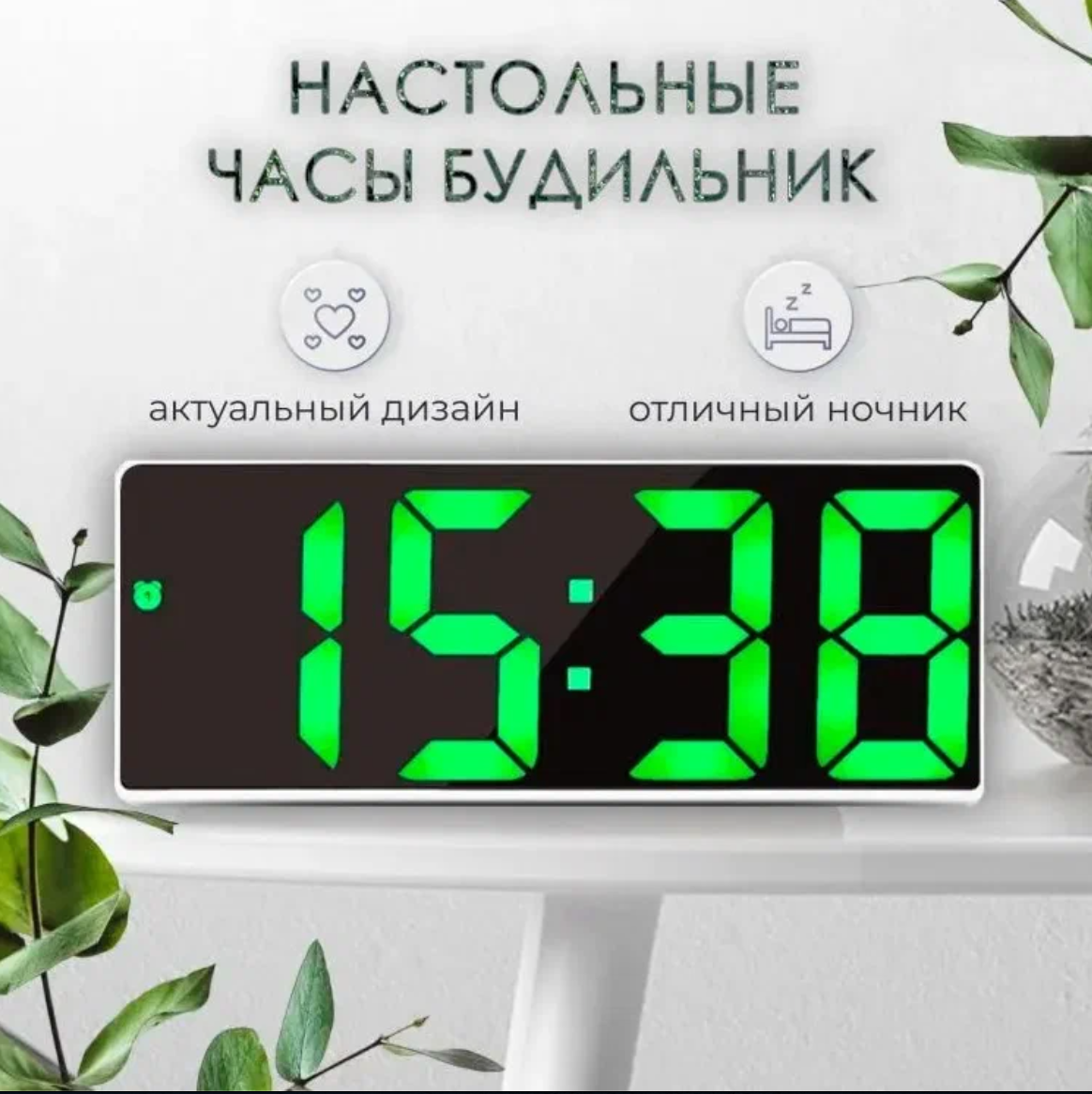 Часы электронные будильник с голосовым управлением / цифровые часы настольные зеленые цифры/ будильник / батарейки в комплекте