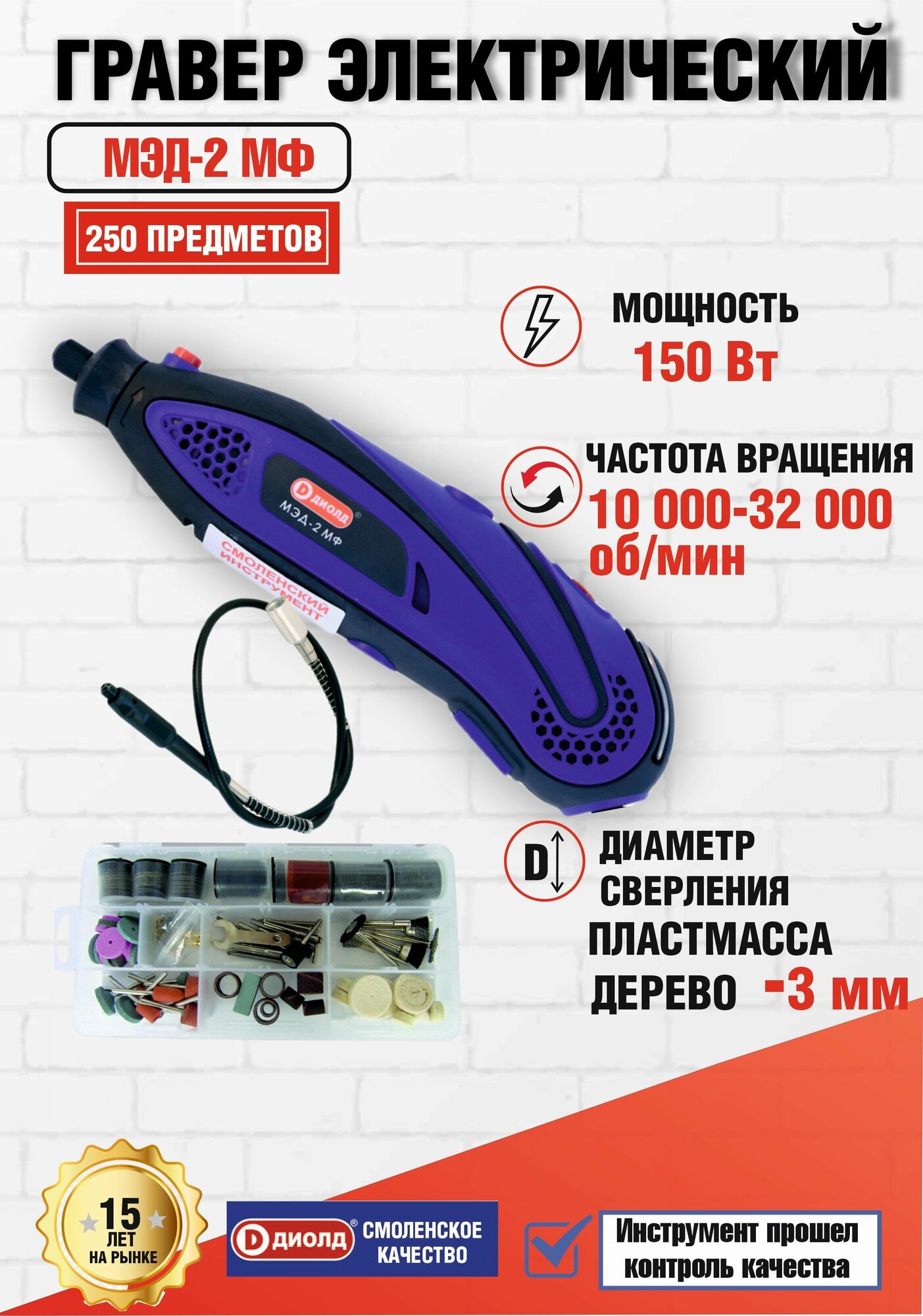 Электрический гравер диолд МЭД-2-МФ 250 предметов