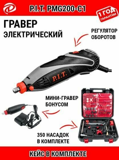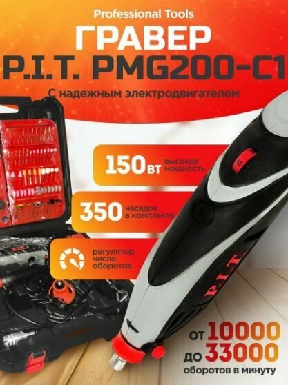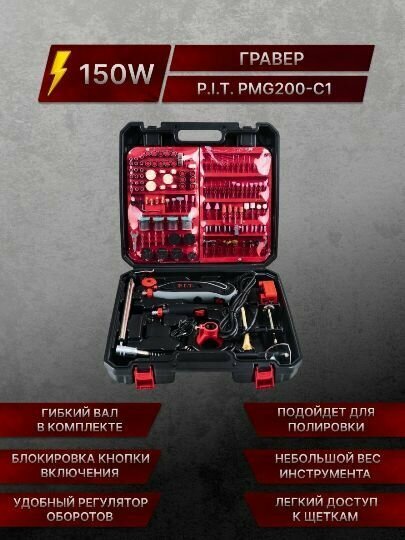 Гравер PMG200-С1 Мастер (150Вт бормаш 12В,,цанга 3,2мм, ск-ть 10-33тыс.об/мин, 350 пред-в) P.I.T