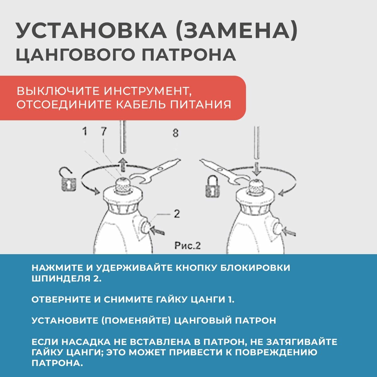 | Особенности конструкции | фиксация шпинделя, блокировка кнопки включения |