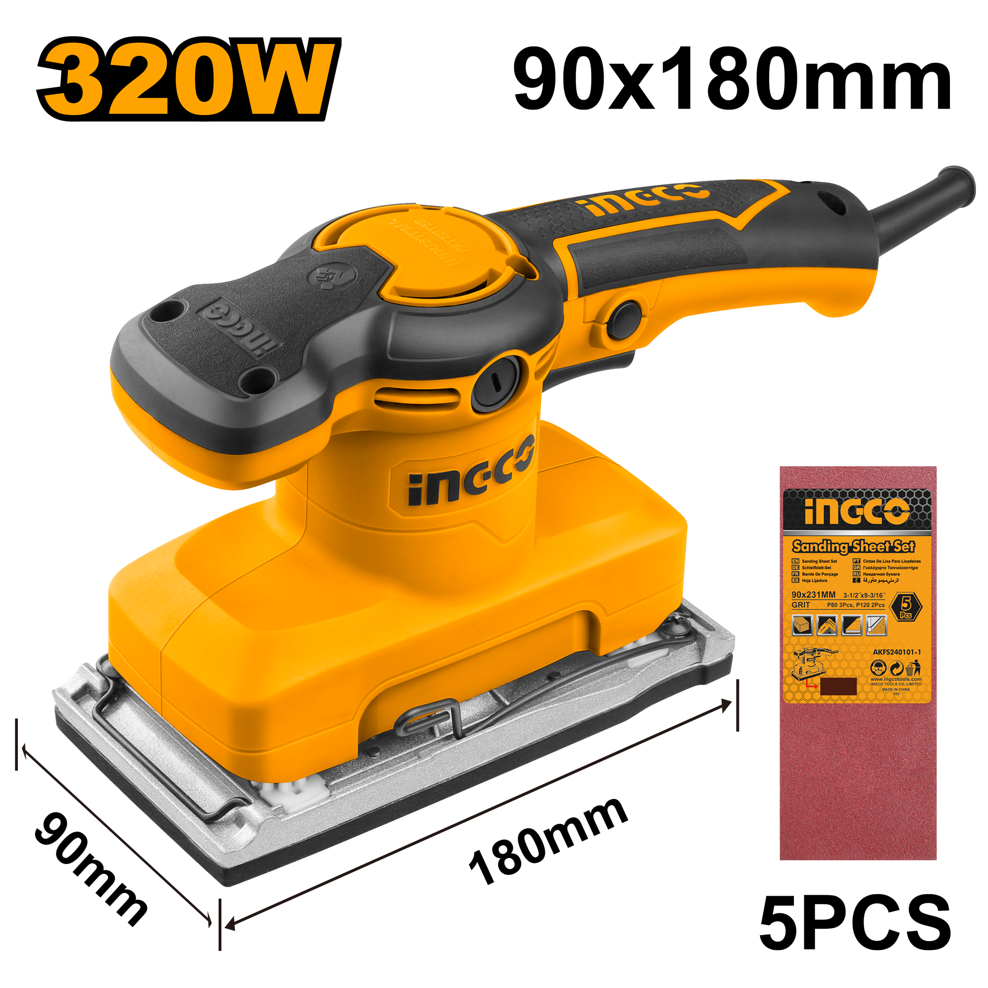 Виброшлифовальная машина Ingco FS3208 (Цвет: Orange)
