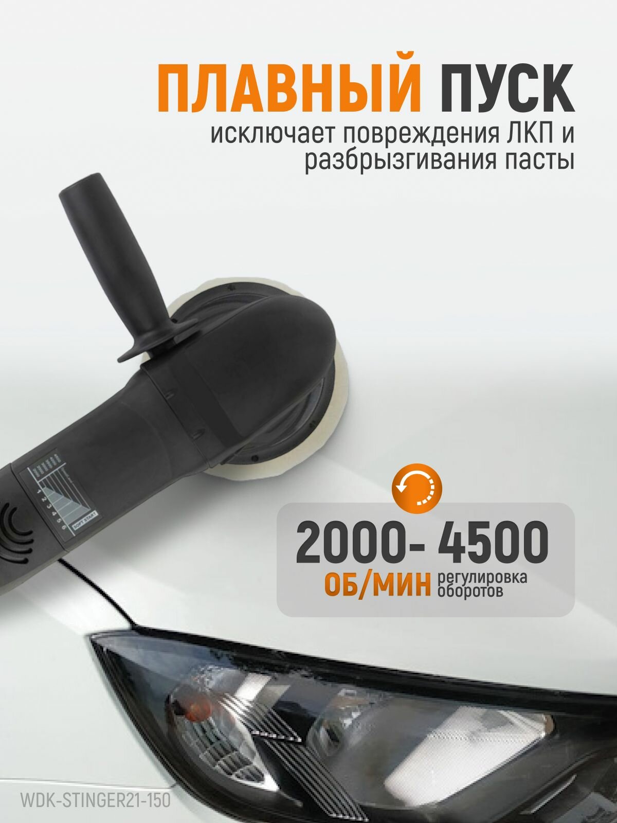 Полировальная машина ротор-орбитальная электрическая, 220в, с подошвой 150 мм, WDK-Stinger21-150