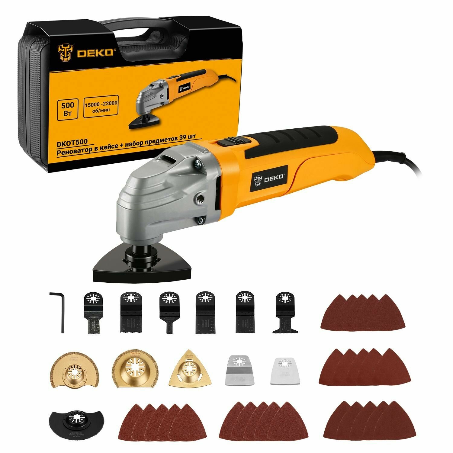 Реноватор DEKO DKOT500 в кейсе+набор предметов 39 шт.