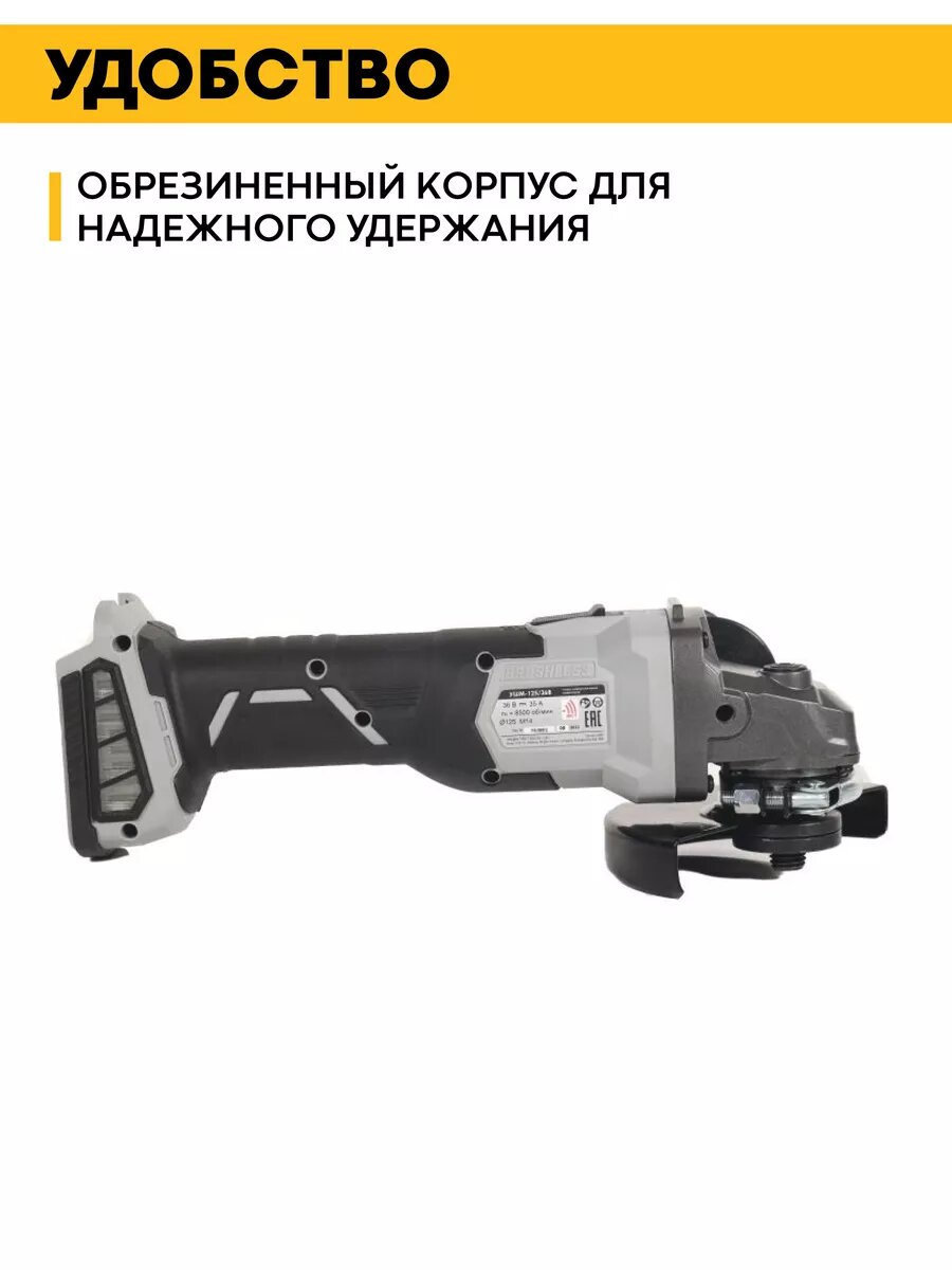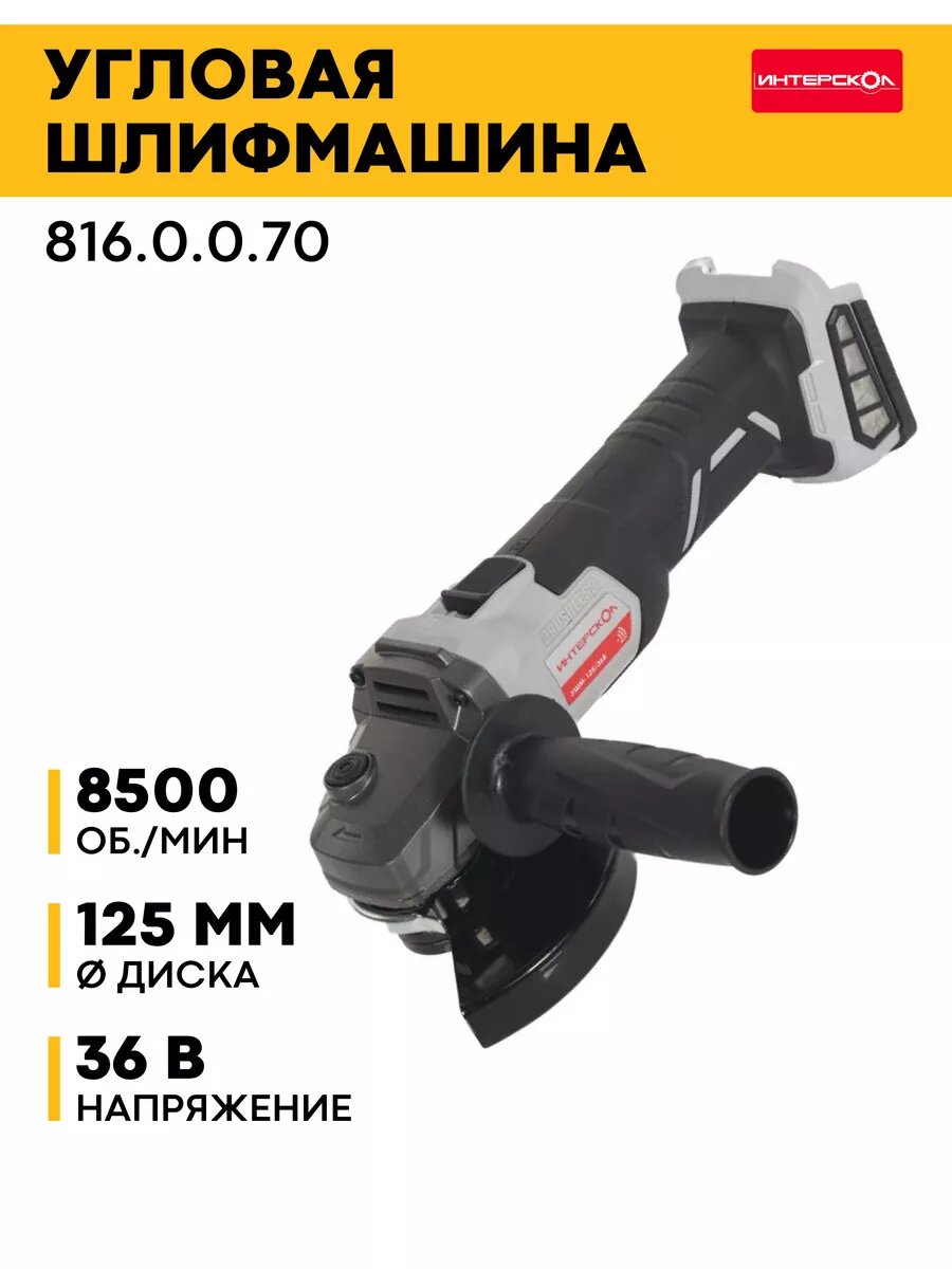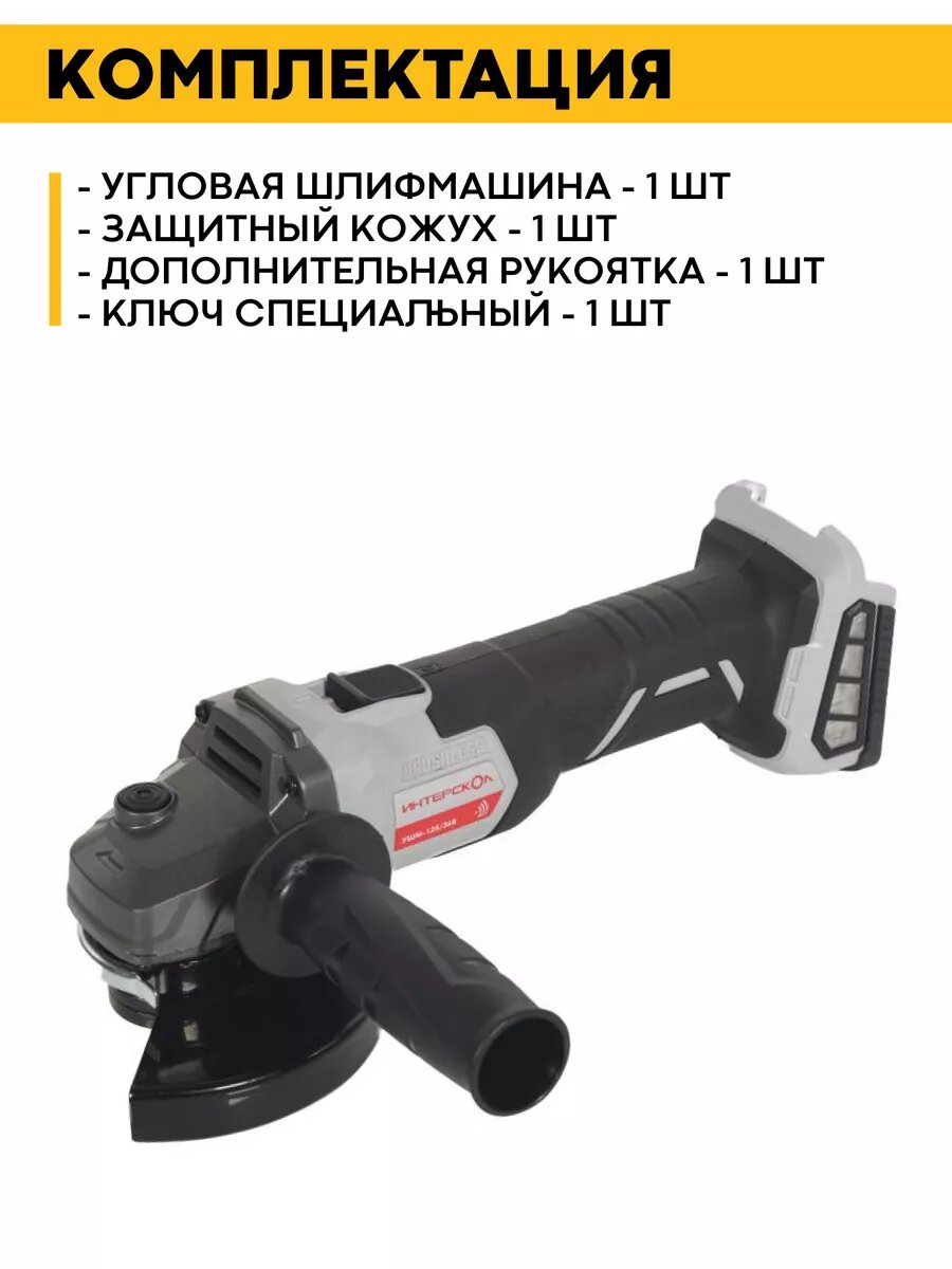 Угловая шлифмашина аккумуляторная ИНТЕРСКОЛ УШМ-125/36ВЭ без АКБ и ЗУ