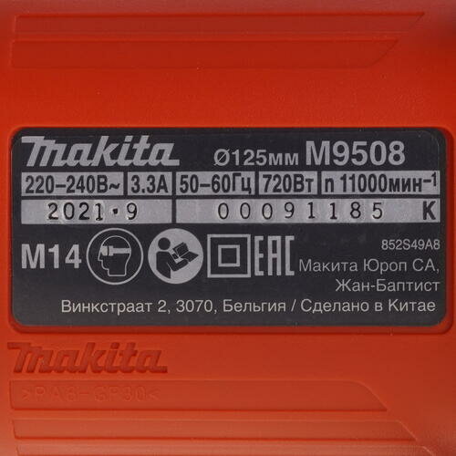 Угловая шлифмашина Makita M9508, 125 мм, 720 Вт, 11000 об/мин