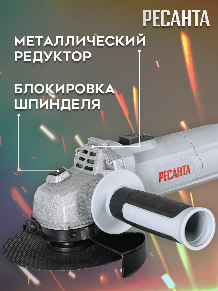 Угловая шлифмашина Ресанта УШМ-125/1400Э, 1400 Вт, D 125 мм