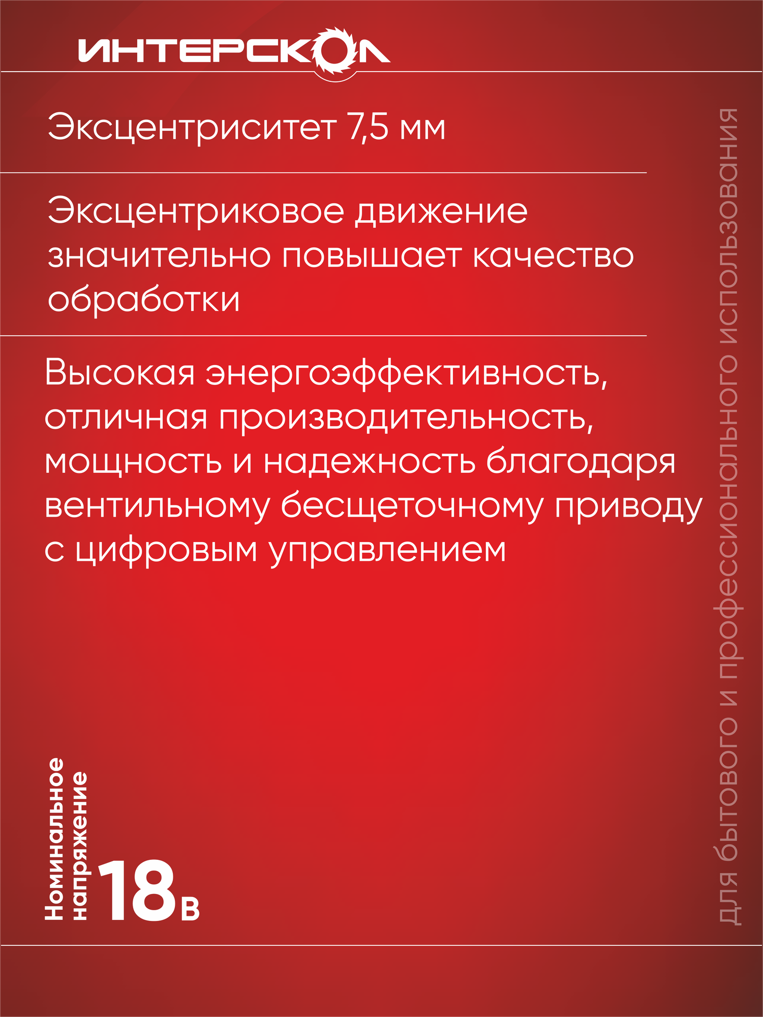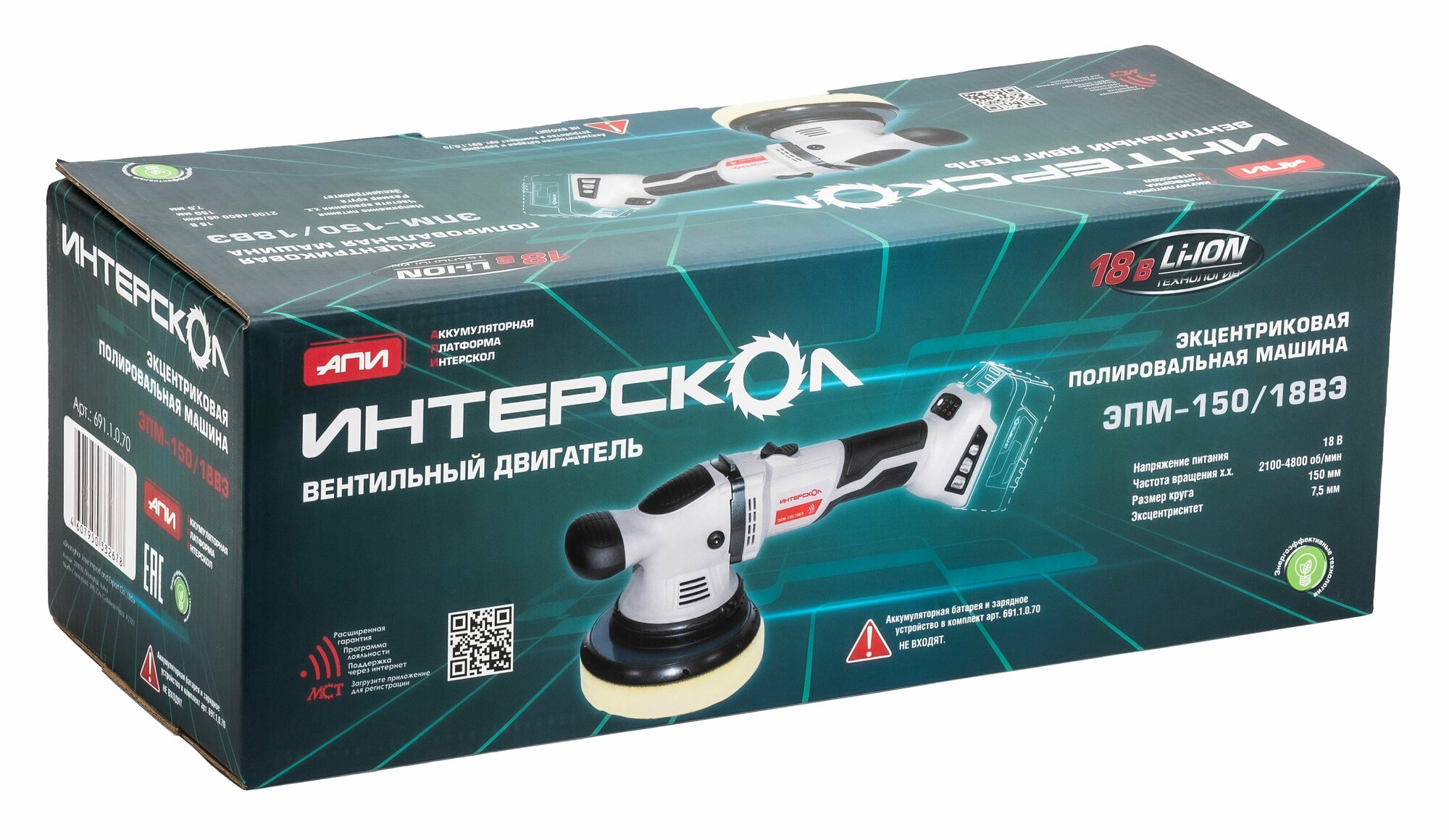 Бесщеточная аккумуляторная эксцентриковая шлифмашина Интерскол ЭПМ-150/18ВЭ 691.1.0.70