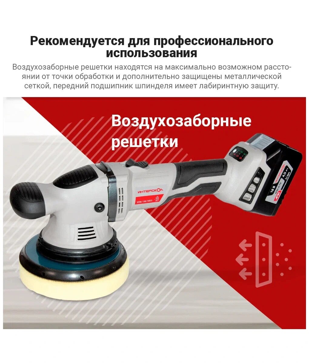 ИНТЕРСКОЛ Бесщеточная профессиональная аккумуляторная полировальная машина ЭПМ-150/18ВЭ