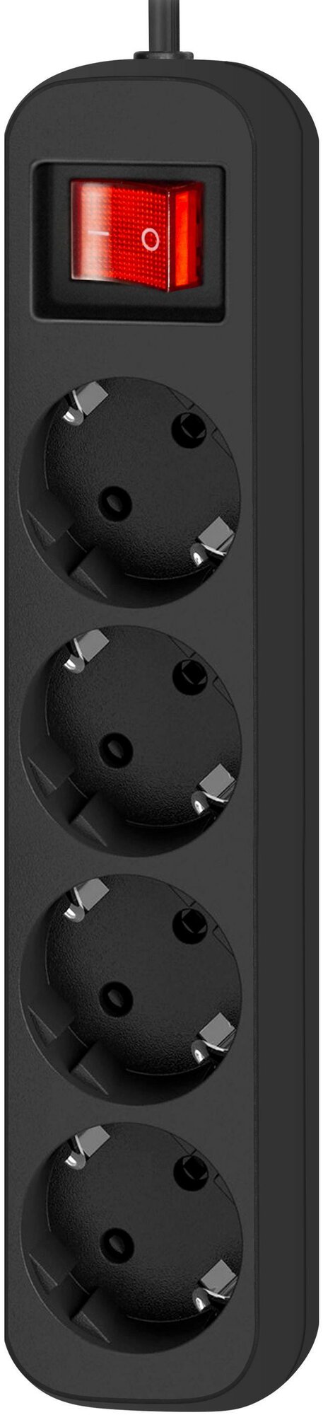 Удлинитель Defender G418 1.8 метра 4 розетки с заземлением выключатель, черный