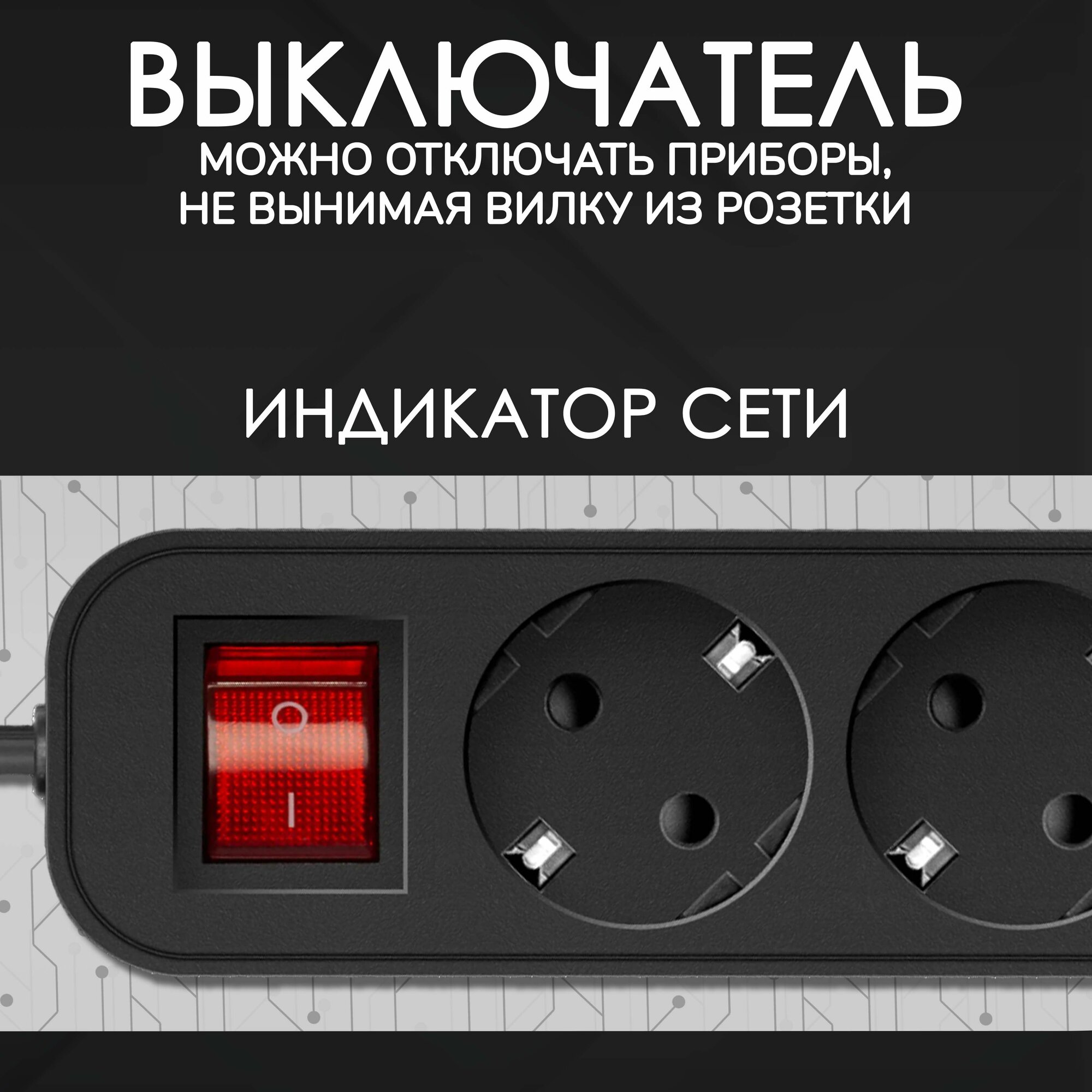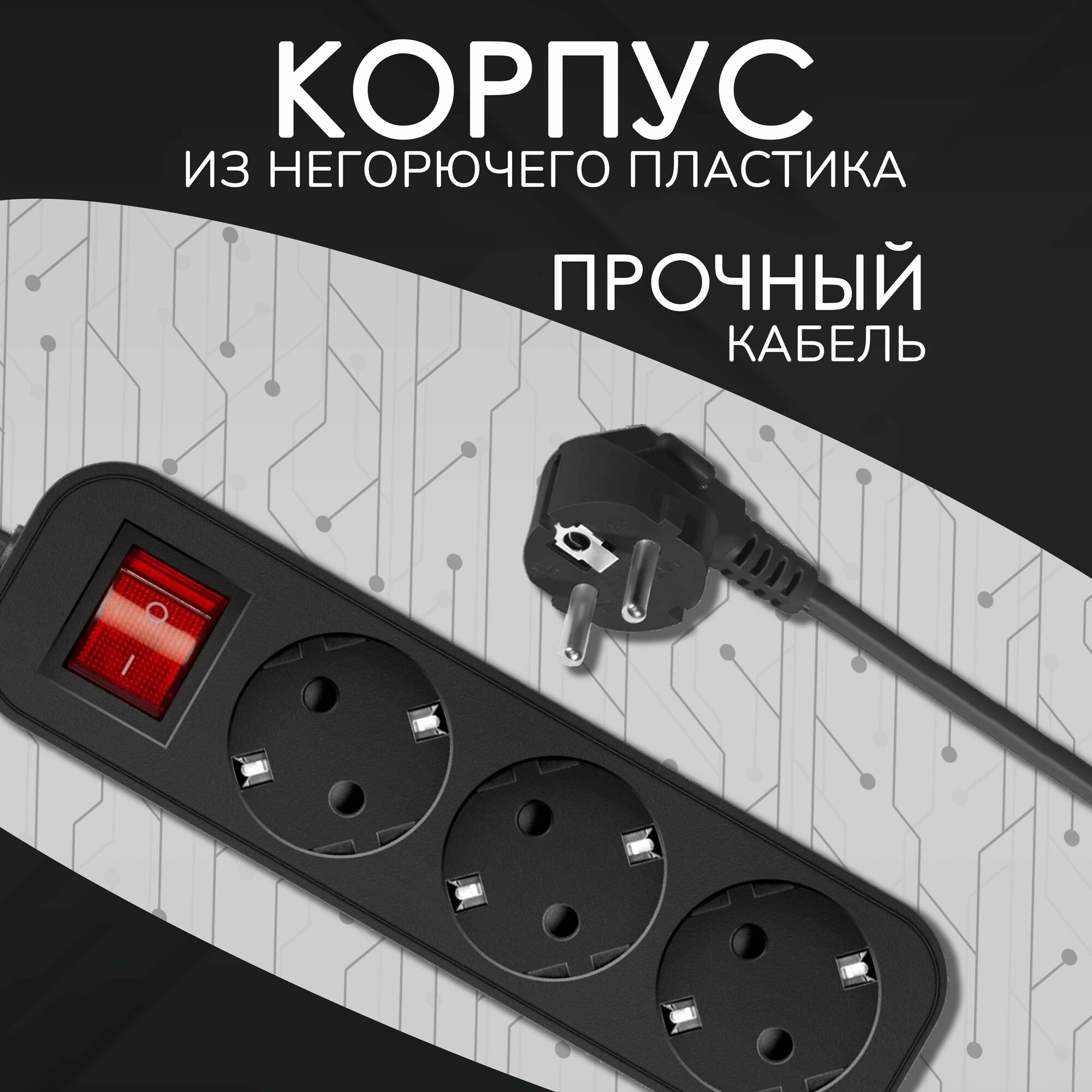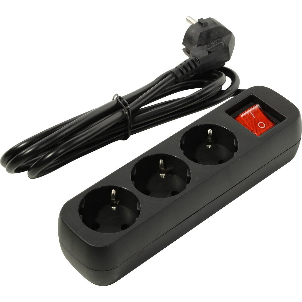 Удлинитель с выключателем Defender S 1.8 м, 3 розетки, черный