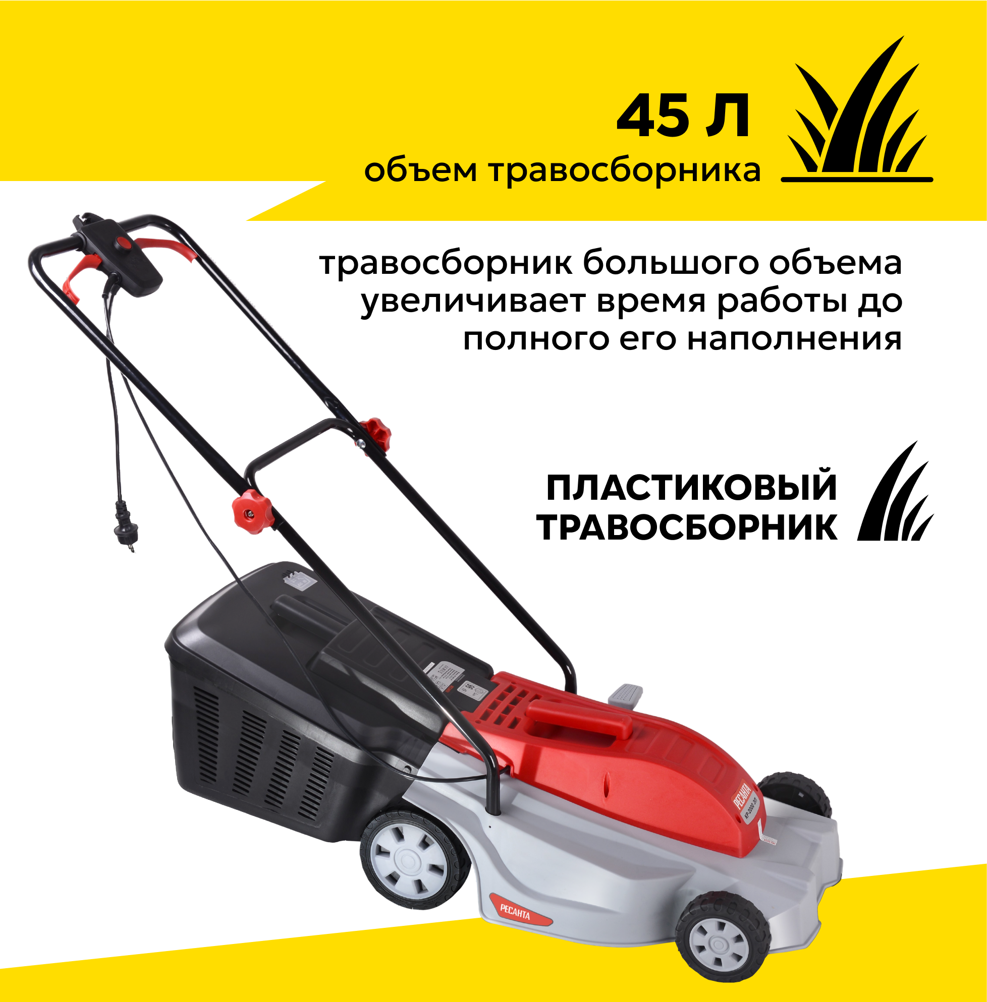 Электрическая газонокосилка РЕСАНТА КР-2000 ЭП, 2000 Вт, 43 см