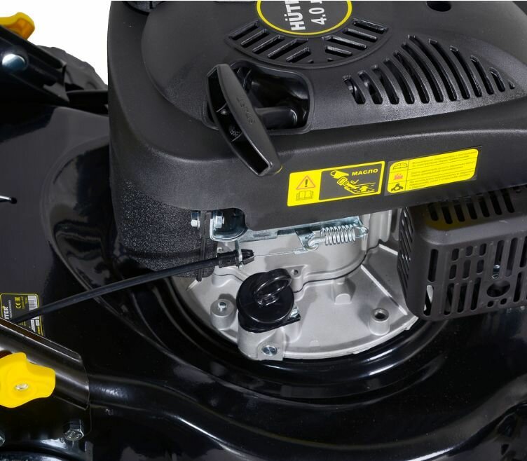 Заводится газонокосилка быстро, пока проблем не возникает. За уровнем масла можно следить в смотровое окошко. Бензин кушает умеренно.