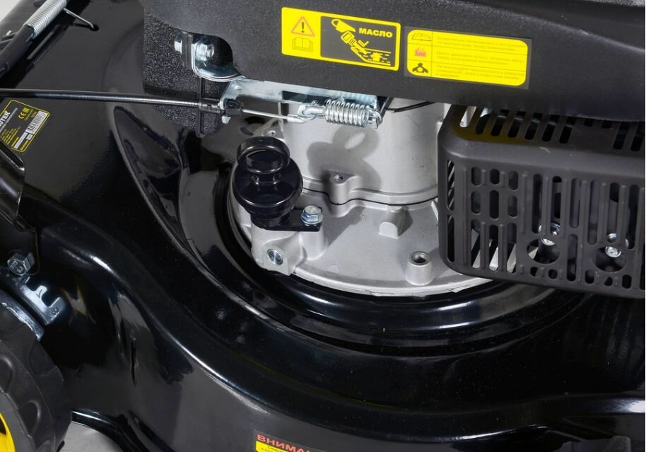 В свой первый запуск косилка завелась буквально сразу после распаковки. Движок работает ровно без срывов. Широкие колеса позволяют нормально её перемещать по газону. Справляется с любой травой и сорняками. Мощности двигателя вполне хватает.