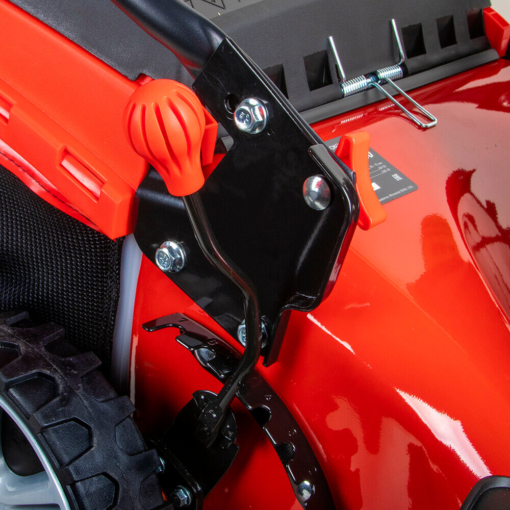| Плюсы: | яркая, красивая, хорошо заводится, хорошо накидывает в короб скошенную траву |