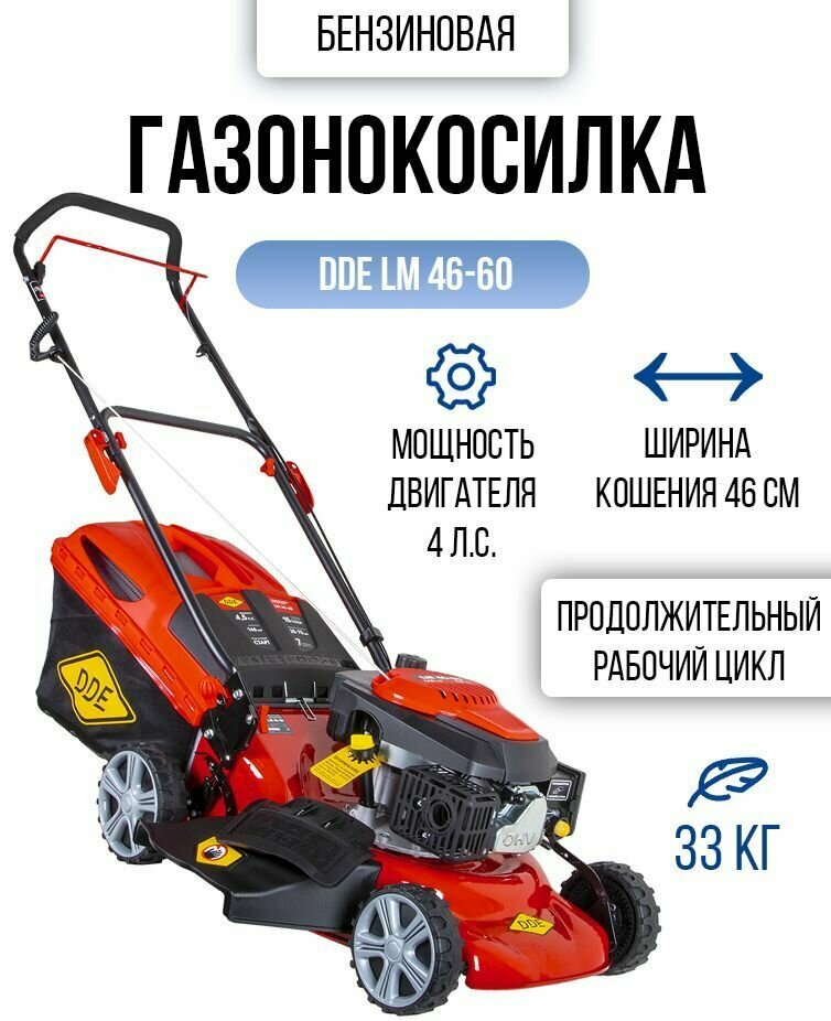 Бензиновая газонокосилка DDE LM 46-60, 4 л.с., 46 см