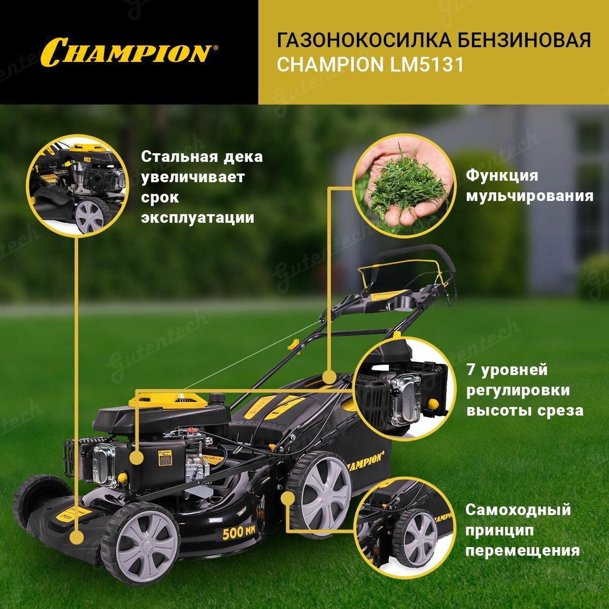 Газонокосилка бензиновая CHAMPION LM 5131 самоходная