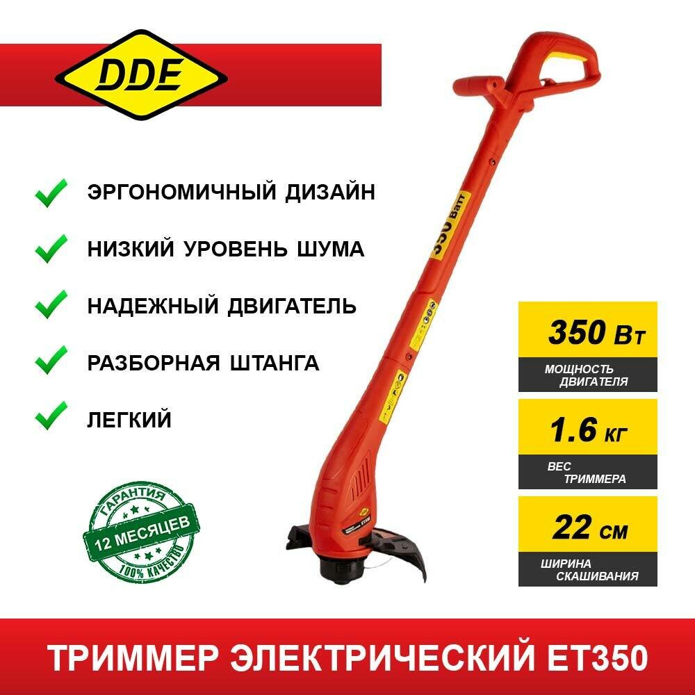 Триммер электрический DDE ET350 (350 Вт, 1.6 кг, леска, разборная штанга, ширина скашивания 22см)