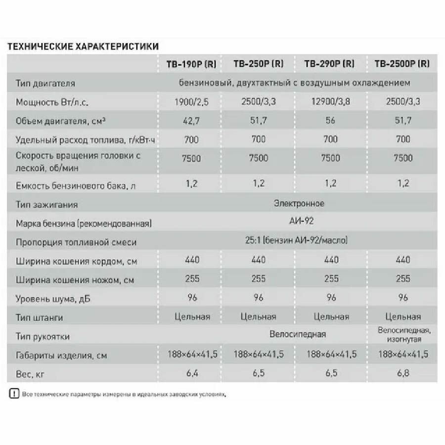 | Подробная комплектация | - Бензиновая мотокоса – 1 шт.; - Триммерная катушка с леской – 1 шт.; - Нож 3-х лопастной – 1 шт.; - Наплечный ремень – 1 шт.; - Ёмкость для смешивания – 1 шт.; - Монтажный набор – 1 шт.; - Руководство по эксплуатации – 1 шт. |