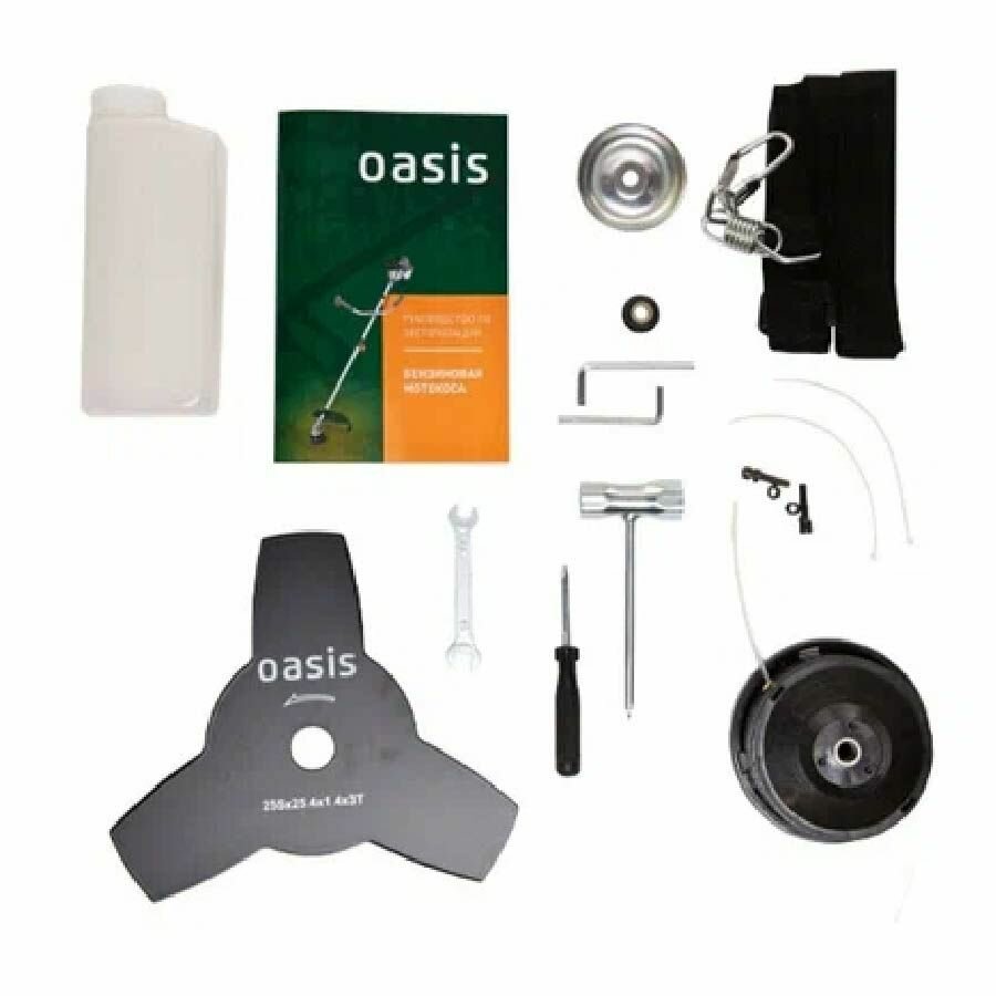 Триммер бензиновый Oasis TB-250, неразъемная штанга 2,5кВт/3,3л.с.,52 куб см нож+леска