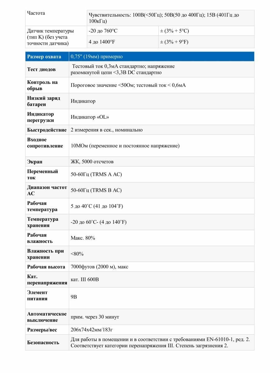 | Плюсы: | Как чисто токовые клещи - интересная модель в плане диапазона измерений и точности. |
