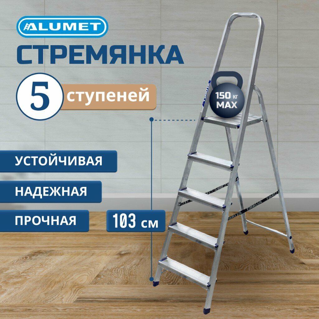 Стремянка Алюмет, Alumet AM 705, алюминиевая, 5 ступеней, 1,02 м интересное: