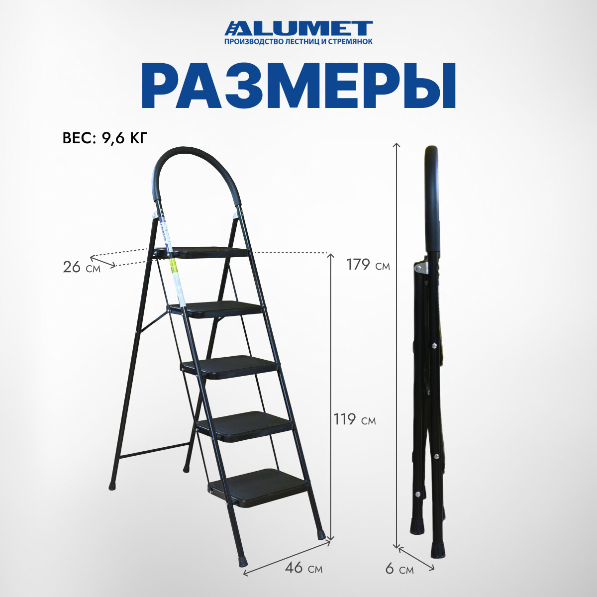 Стремянка-стул c широкими ступенями Alumet MCH205, стальная, 5 ступеней, 1,79 м