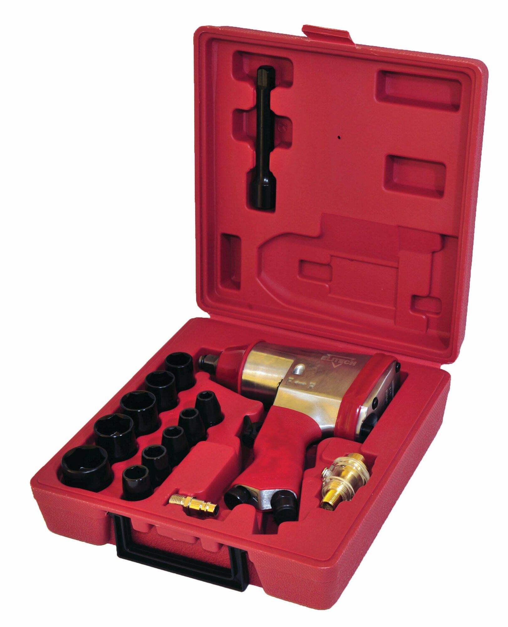 | Комплектация | головки 1/2" (9,10,11,13,14,17,19, 22, 24, 27 мм), удлинитель 1/2" (125 мм), шарнир 1/2", ключ шестигранный (5 мм), лубрикатор, тюбик с маслом, переходник 1/4" - рапид |