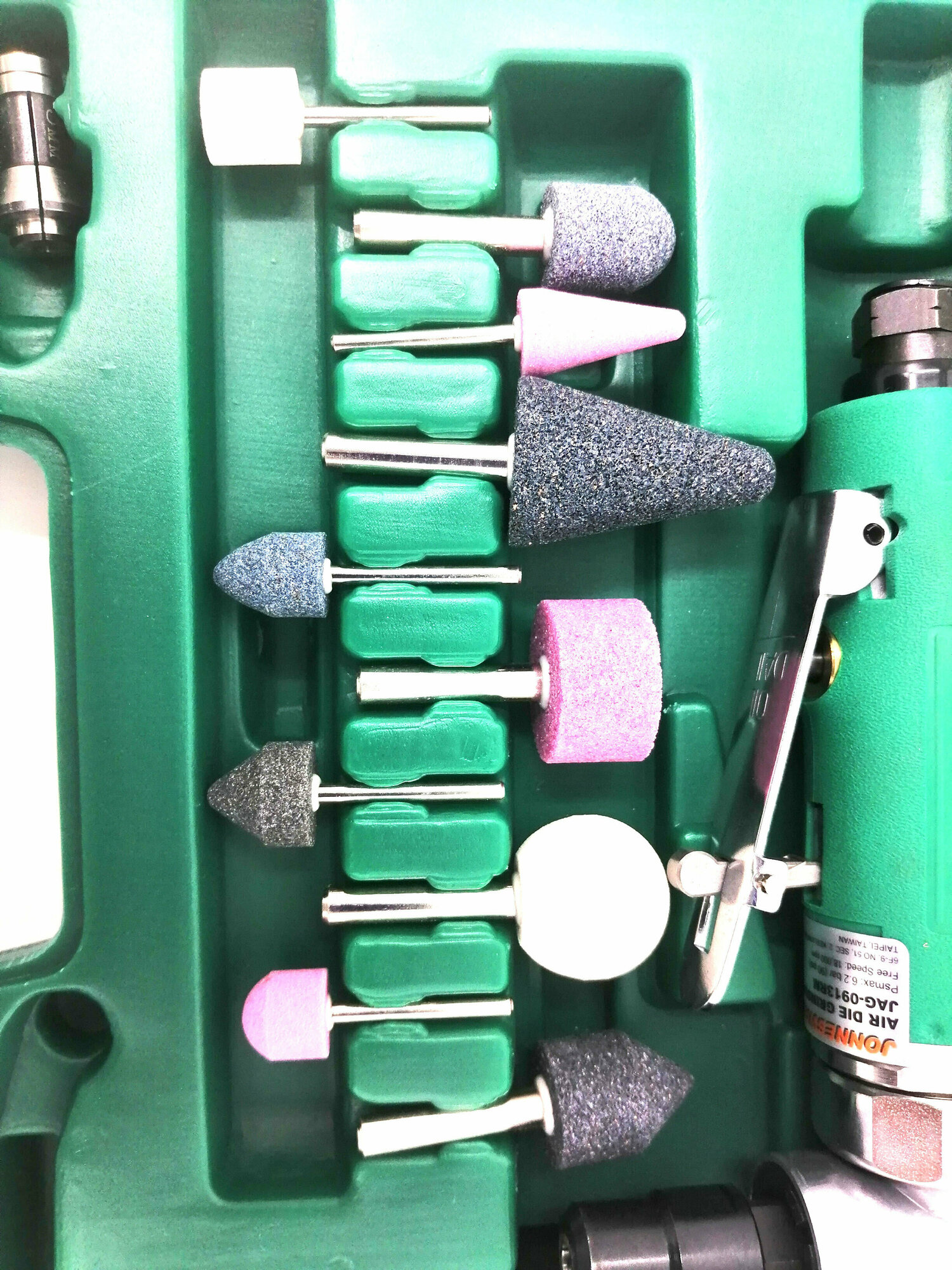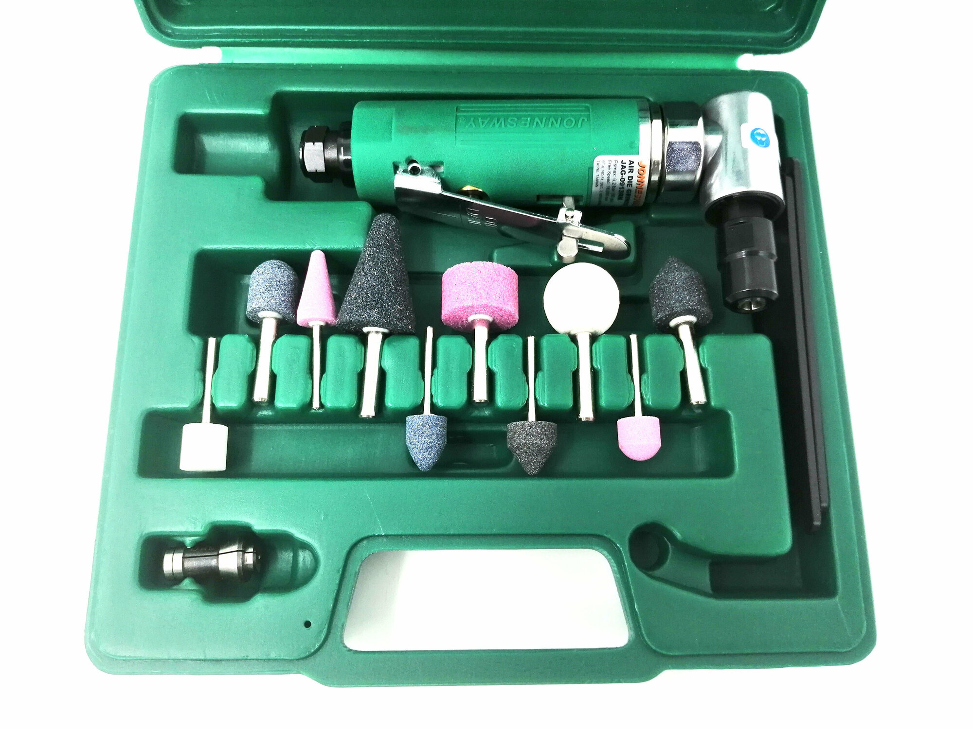 JONNESWAY JAG-0913RMK Набор бормашинка пневматическая угловая 18000 об/мин., патрон 3/6 мм, L-155 мм с насадками, 15 предметов