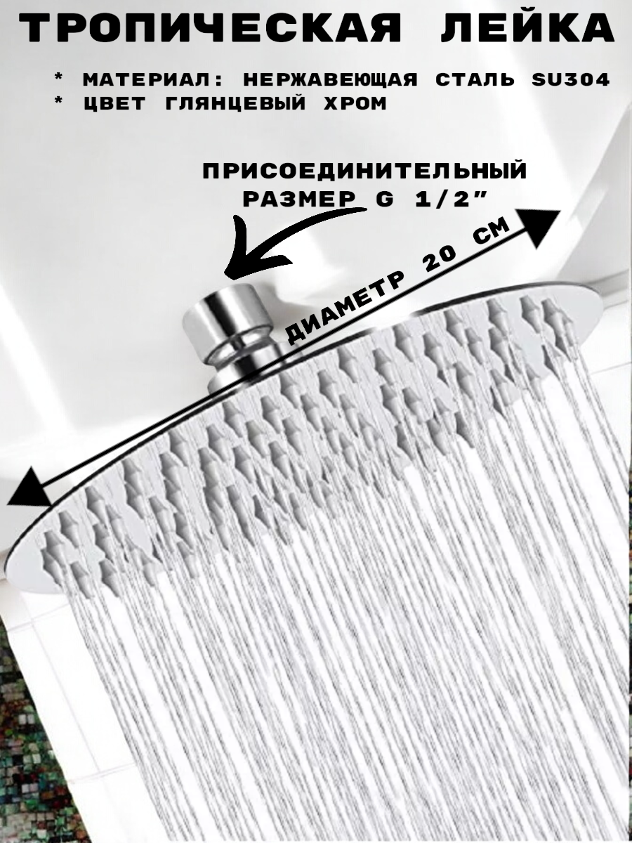 СохранитьOute Лейка для душа потолочная круг 2020 см глянцевый хром, кронштейн с шарниром для изменения угла . интересное:
