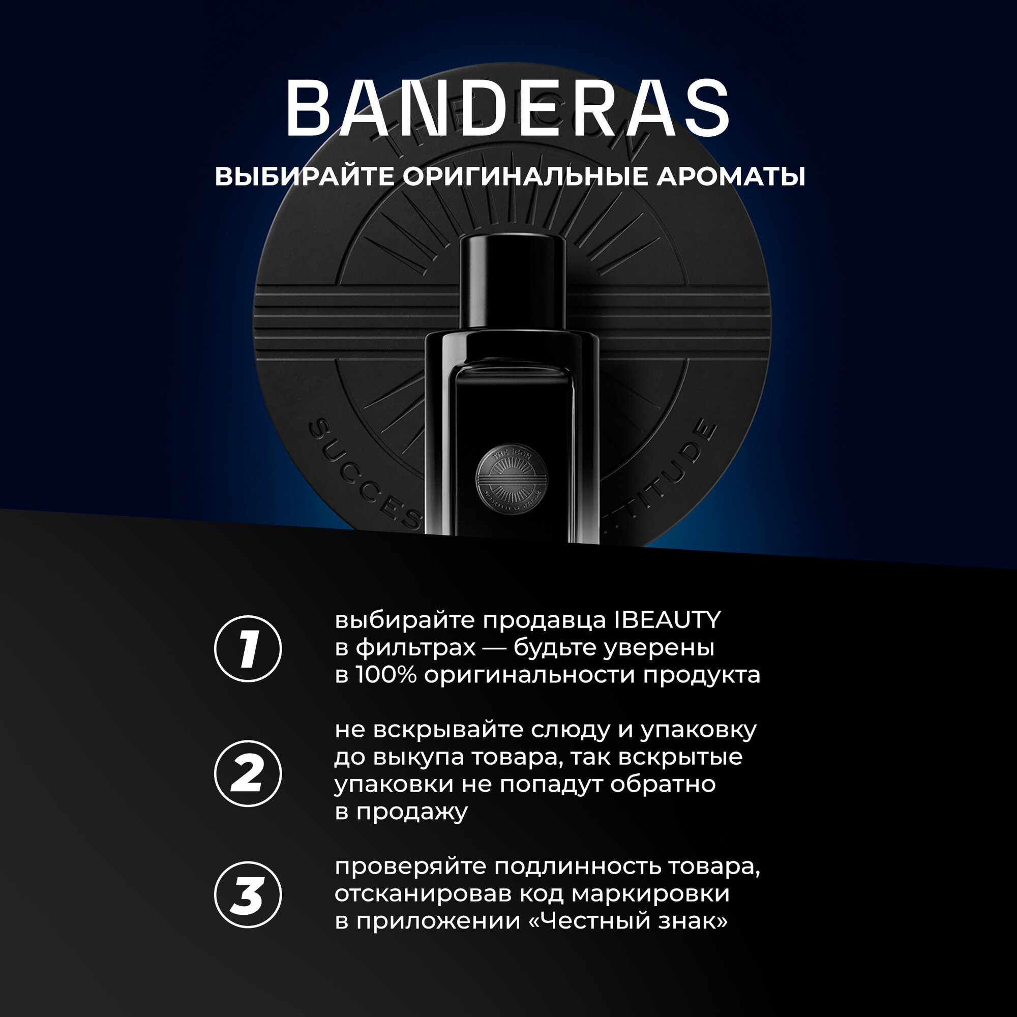 Древесные духи Antonio Banderas The Icon The Perfume / Парфюмерная вода 50 мл / Аромат Антонио Бандерос Зе Айкон Зе Перфюме / Парфюм для мужчин