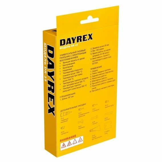 Ниже Вы можете прочитать отзывы на Газовый паяльник DAYREX-25 626553, ознакомится с подробными характеристиками, посмотреть интересные обзоры и фотографии на Газовый паяльник DAYREX-25 626553.