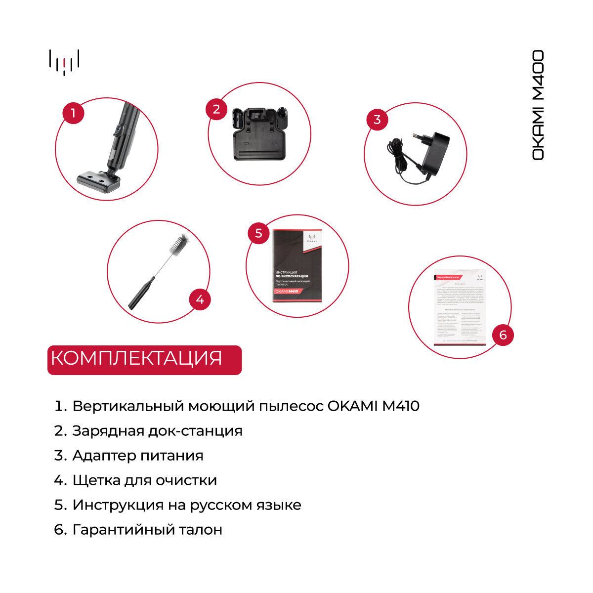 OKAMI Моющий пылесос M410 беспроводной вертикальный, автосушка валика, Оками умный пылесос