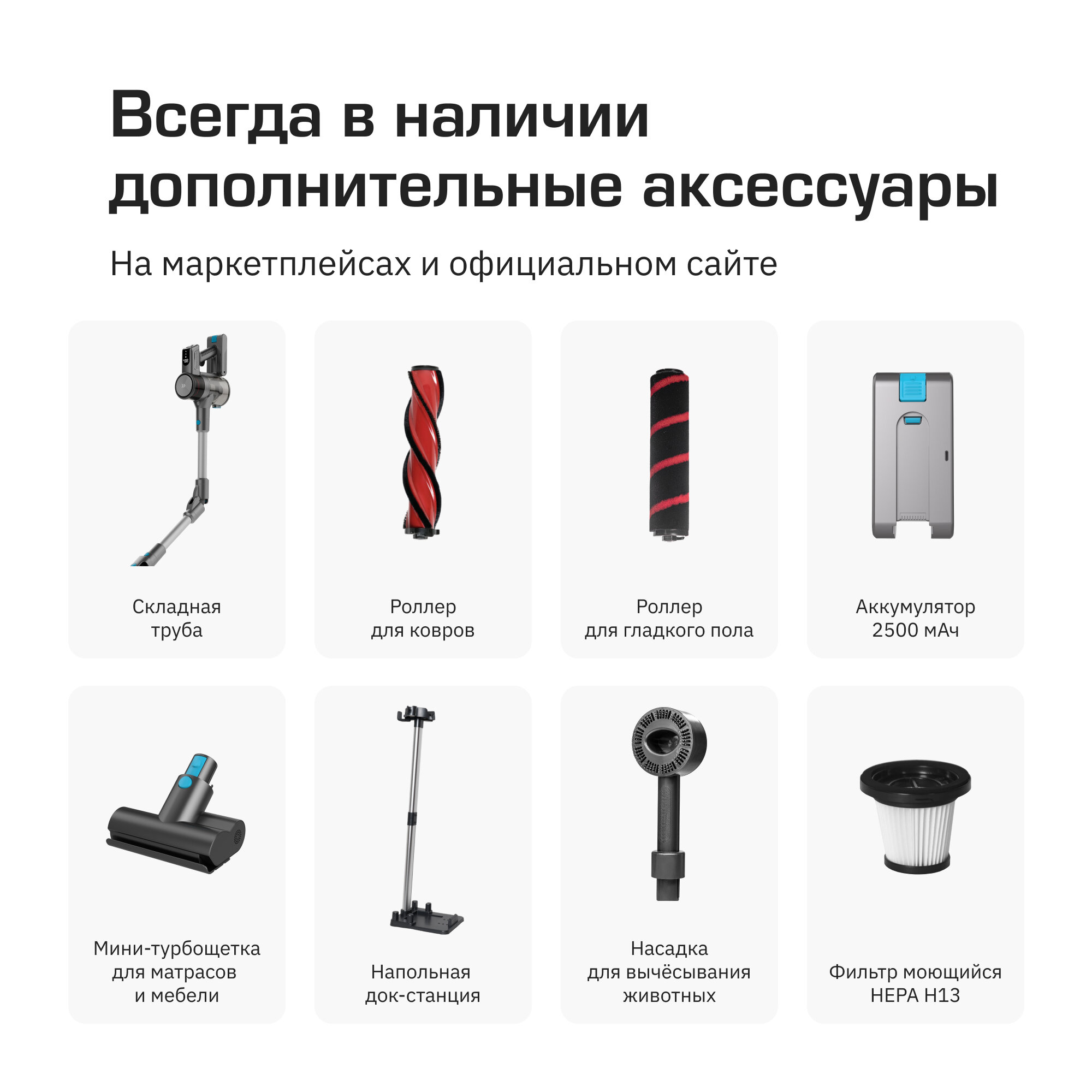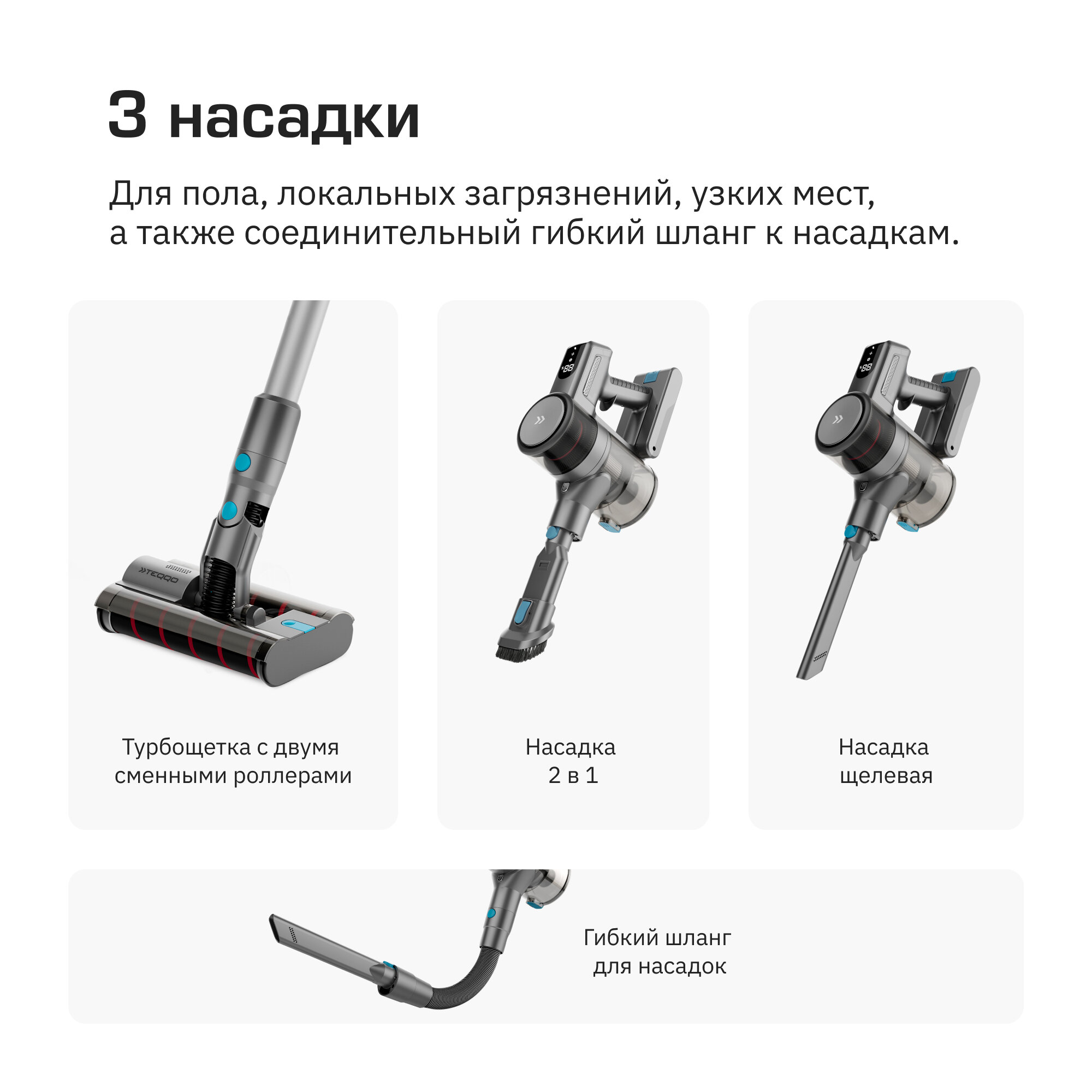 | Насадки в комплекте | Роллер для твердых покрытий, щетка 2 в 1 для мебели, щелевая насадка, стандартная турбощетка |