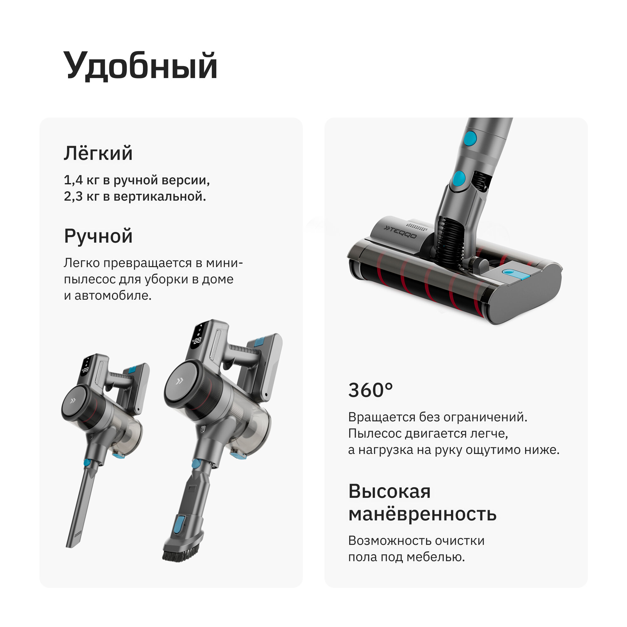 Пылесос Teqqo Powerstick Glide Plus интересное: