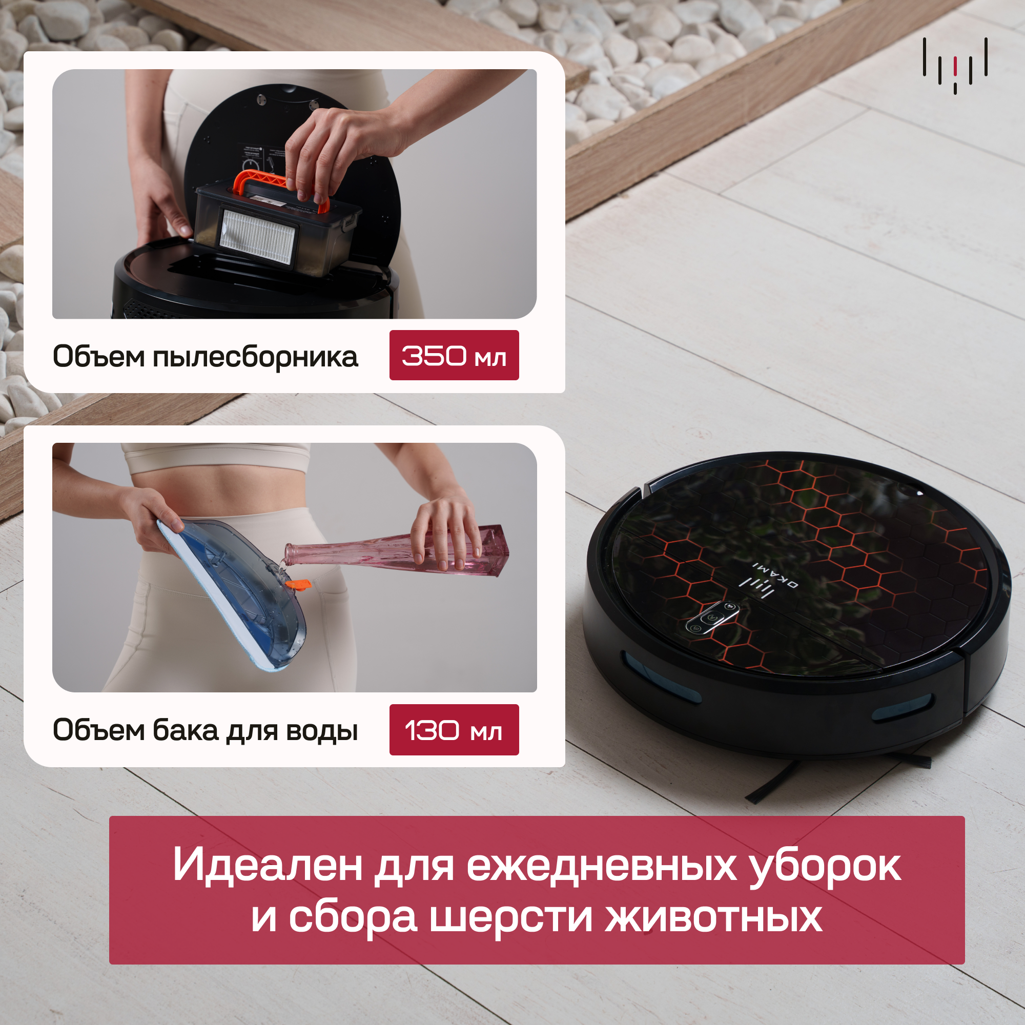 Купить OKAMI Робот-пылесос R100: 78 мм высоты, 2600 Па Оками, идеален для сбора шерсти и влажной уборки без турбощетки