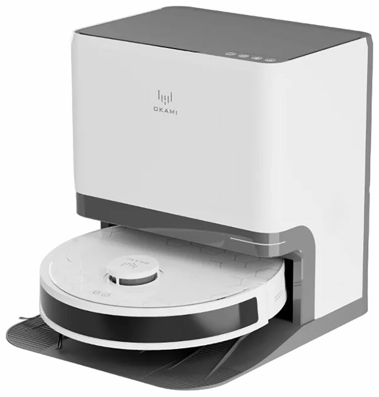 Робот пылесос с влажной и сухой уборкой OKAMI R120 со станцией самоочистки и повышенной мощностью, робот пылесос с Алисой, с нера фильтром, Оками умный пылесос