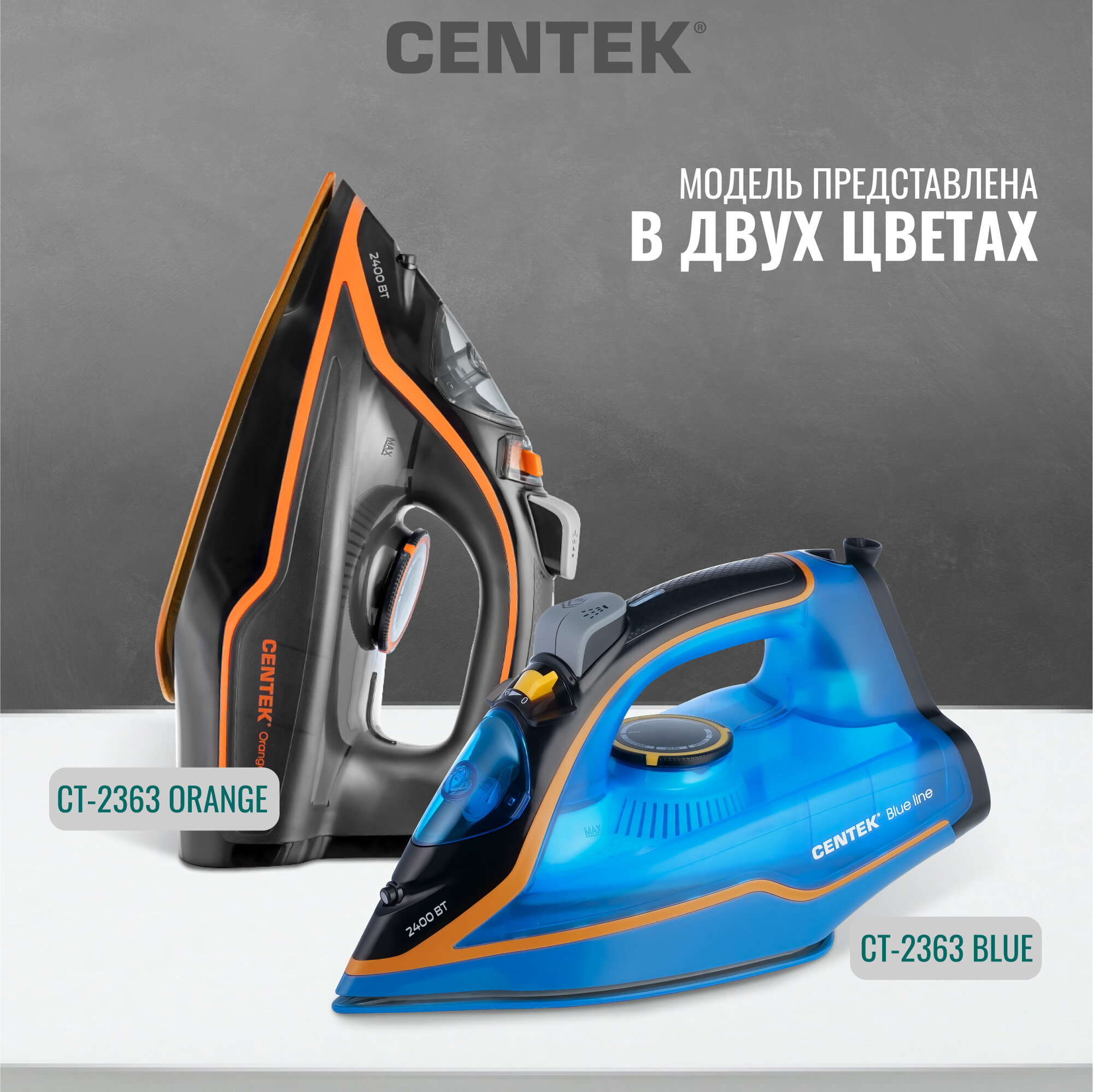 Утюг CENTEK CT-2363 ORANGE/ 2200 Вт/ керамическая подошва/ 300 мл