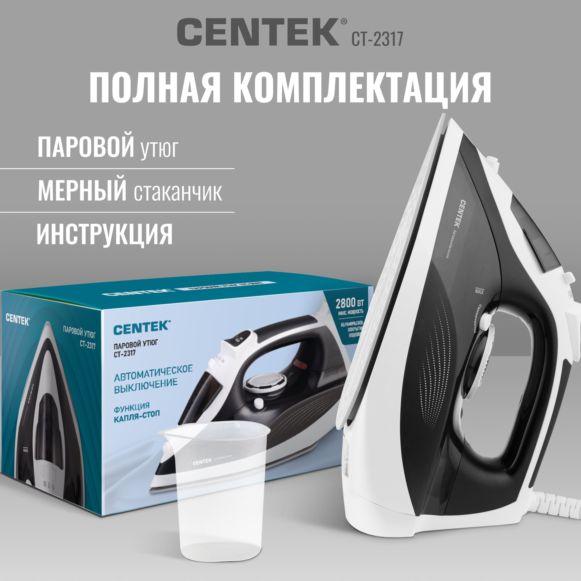 Купить Утюг CENTEK CT-2317: черный, 2800Вт, керамическая подошва, паровой удар, защита от накипи, автовыключение