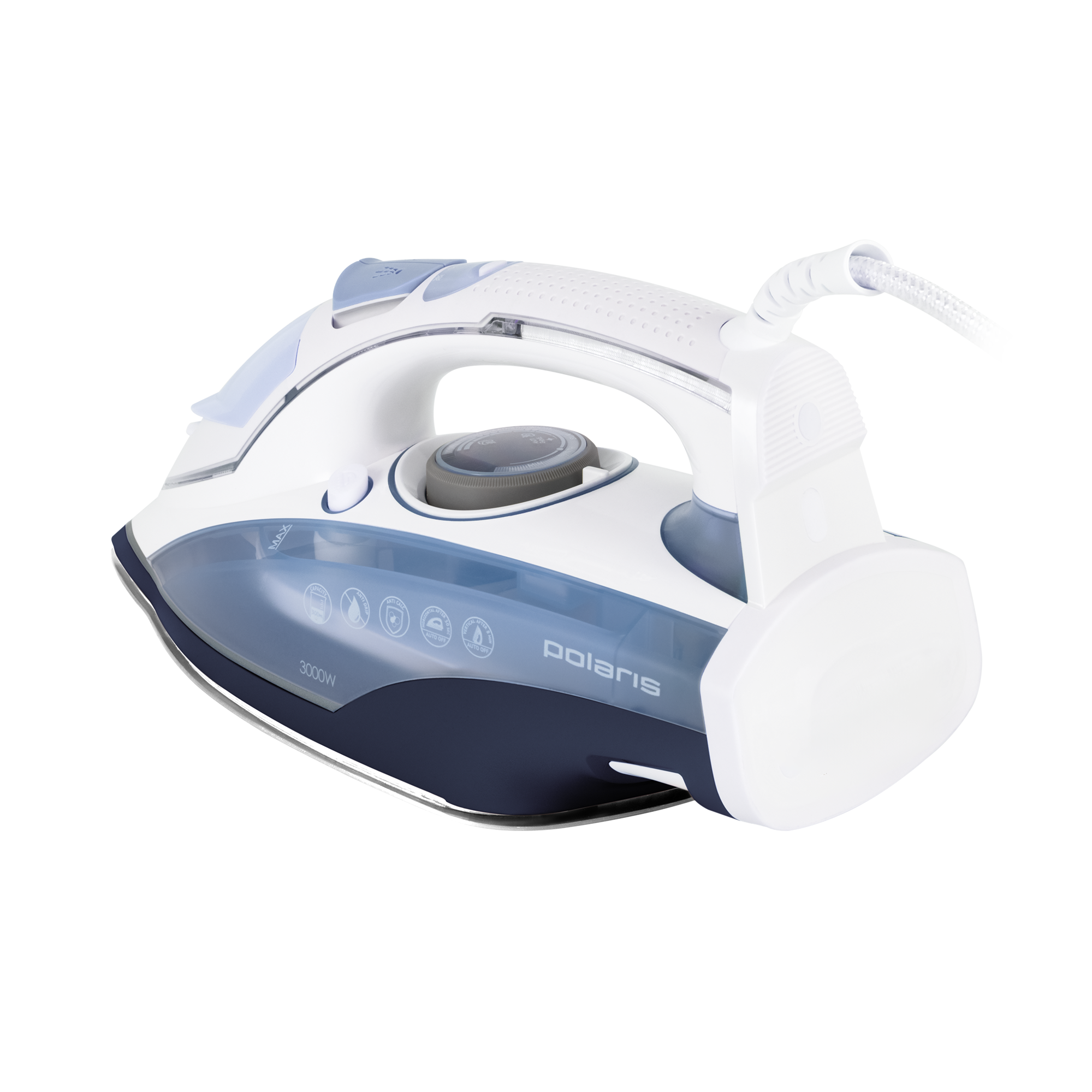 Купить Паровой утюг Polaris PIR 3074 SG AA 3m, встроенный парогенератор, мощность 3000 вт, белый/голубой