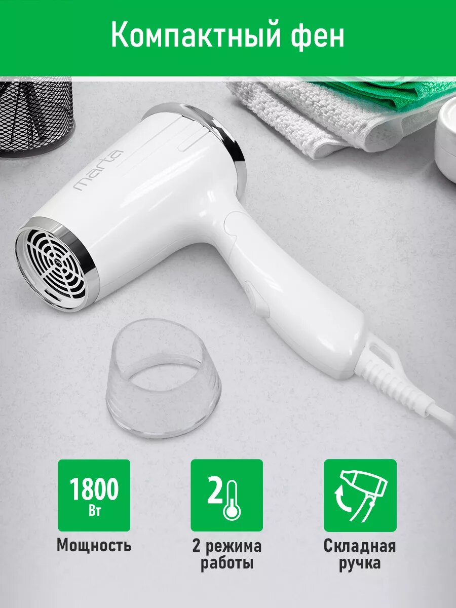 Хороший фен, удобно брать с собой в дорогу, так как он складывается.