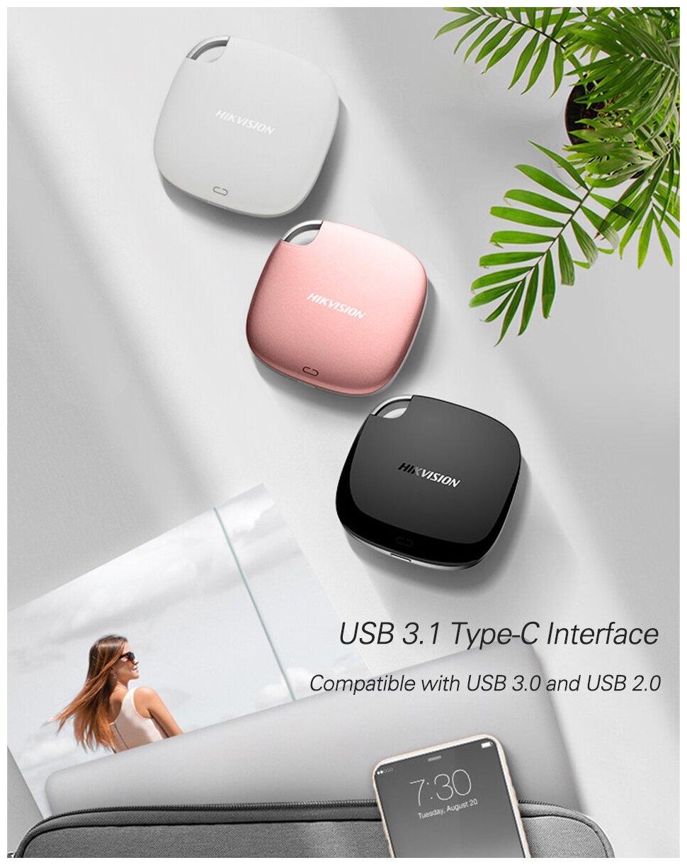 Внешний SSD Hikvision USB 3.1 Type-C, 1TB черный (HS-ESSD-T100I/1024G/BLACK)