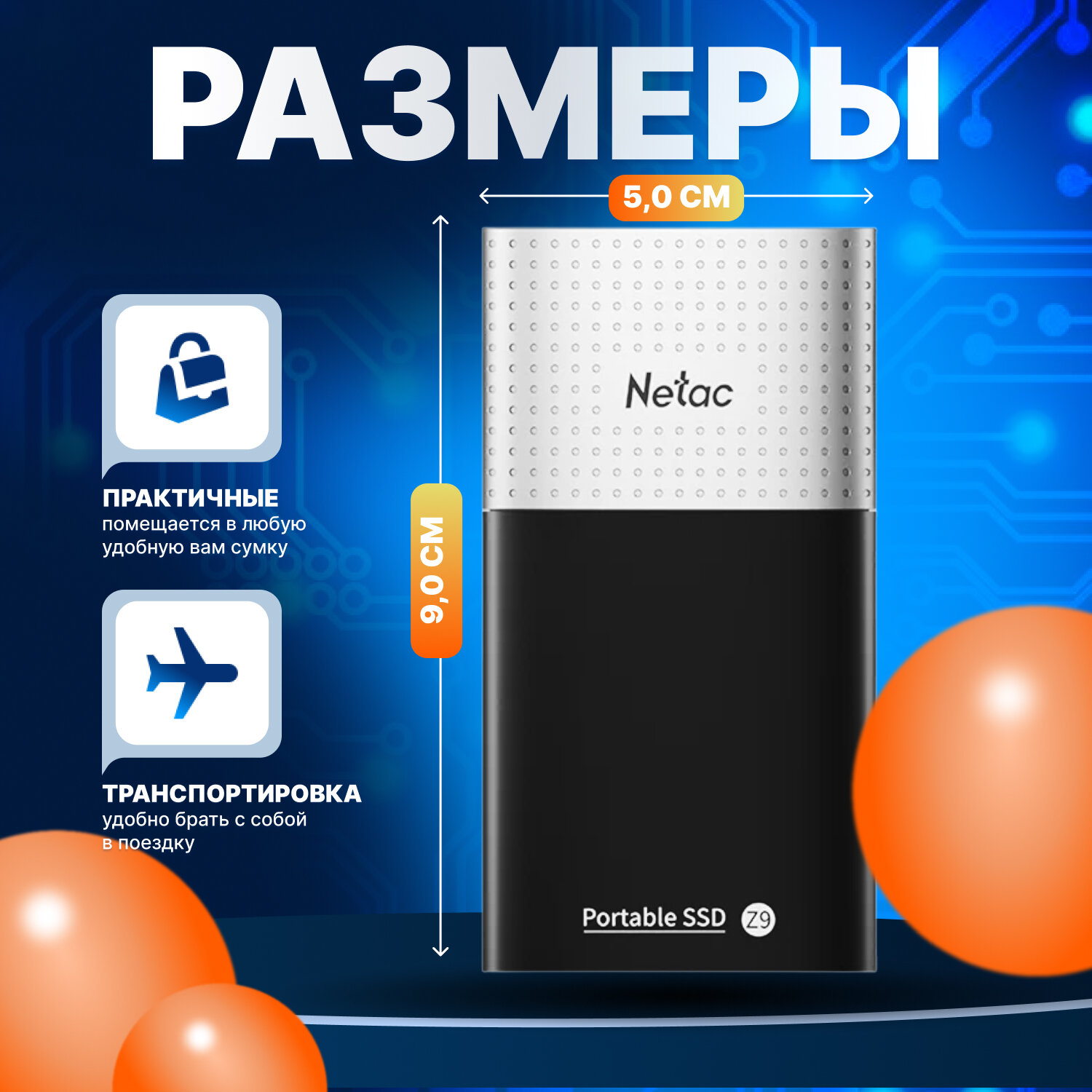 500 ГБ Внешний SSD диск Netac External SSD Z9 (NT01Z9-500G-32BK)
