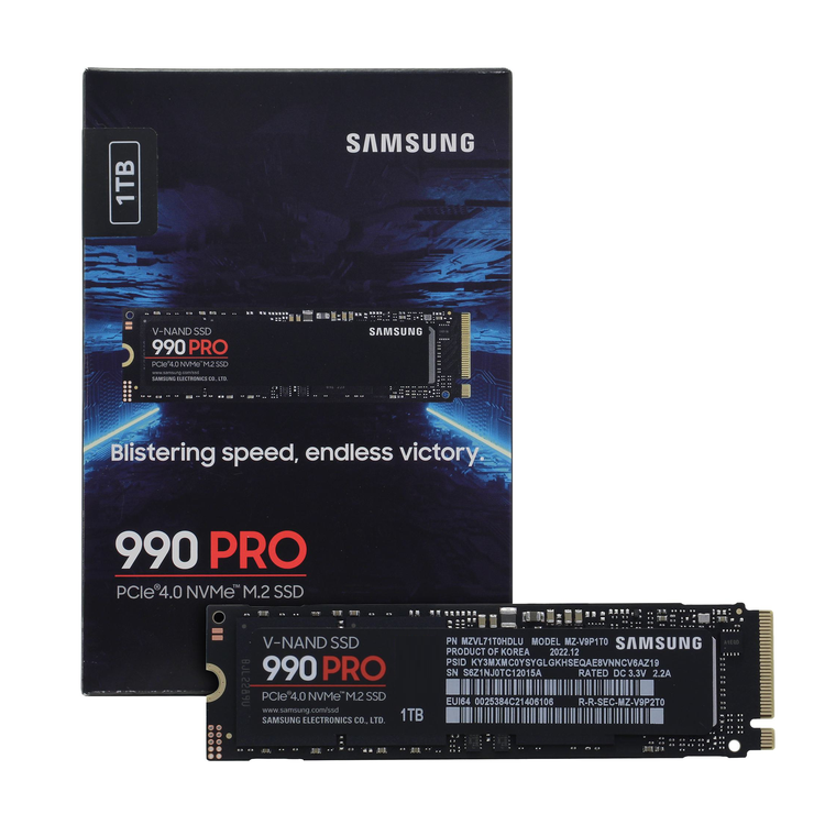 Твердотельный диск Samsung 990 PRO 1TB M.2, PCI-E 4.0 x4, TLC 3D NAND [R/W - 7450/6900 MB/s] /EU MZ-V9P1T0BW