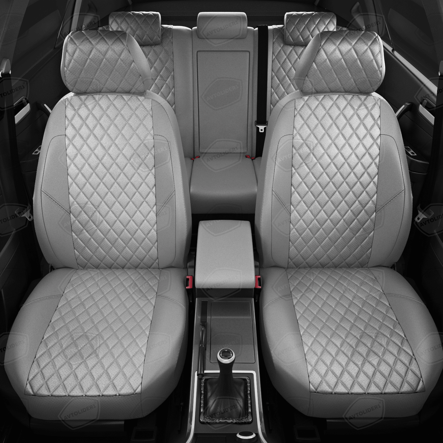 Комплект каркасных чехлов 5D CarFashion Consul Plus, чёрные, отстрочка серая