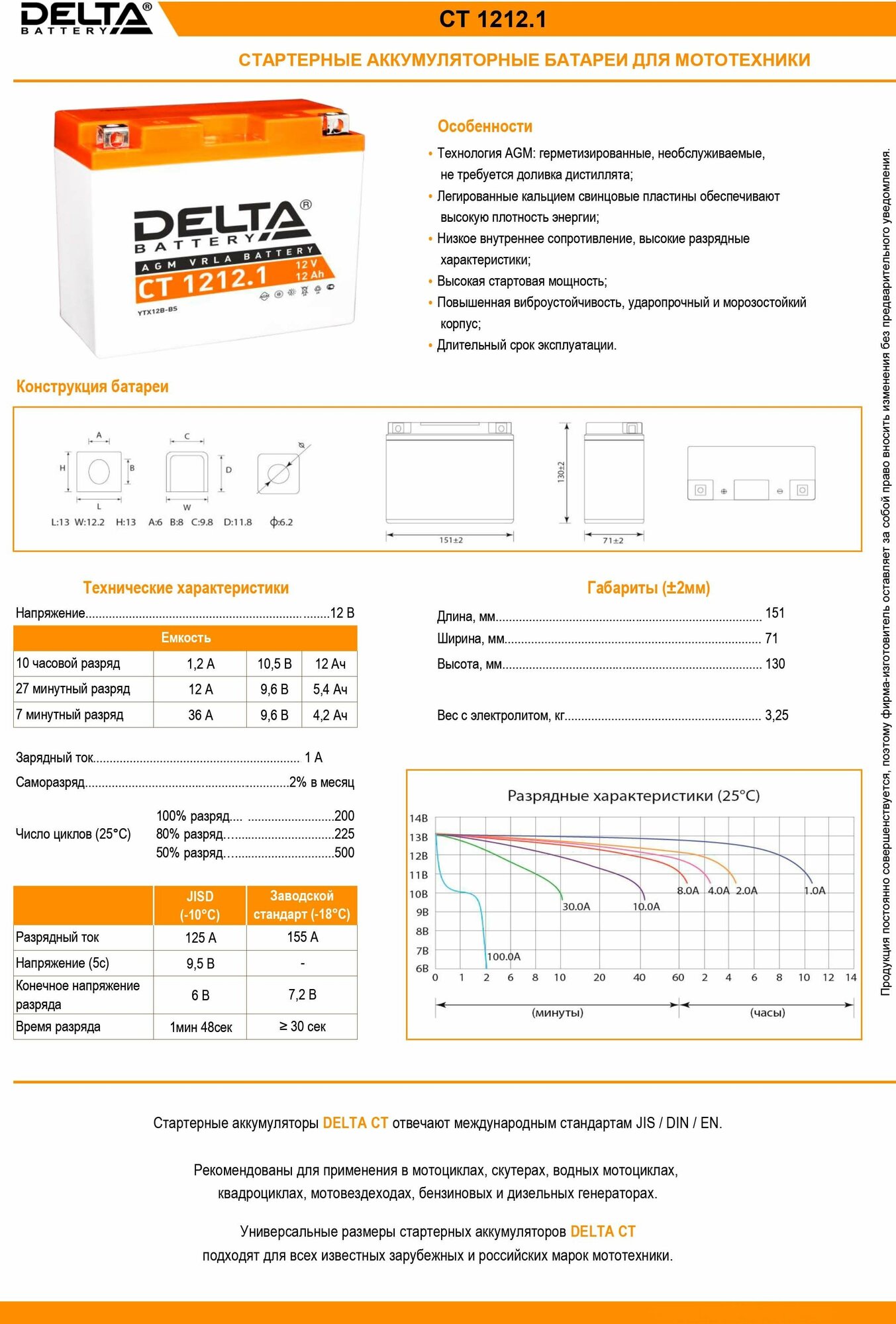Ниже Вы можете прочитать отзывы на Delta CT 1212.1 Аккумуляторная батарея для мототехники (YT12B-BS), ознакомится с подробными характеристиками, посмотреть интересные обзоры и фотографии на Delta CT 1212.1 Аккумуляторная батарея для мототехники (YT12B-BS).